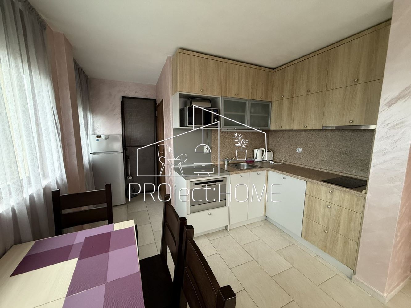 - Просторен хол/всекидневна с голям кът за отдих и оборудвана кухня 🍽️