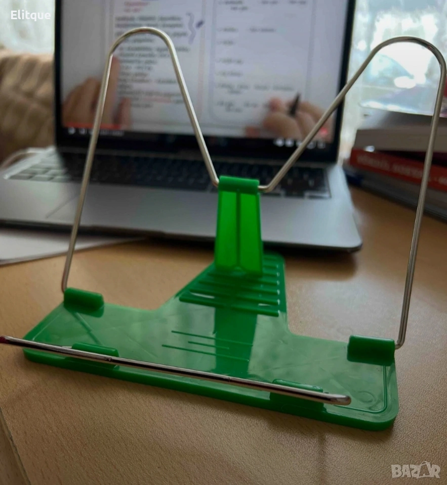 Удобна поставка за книги TV1162 Практична и функционална поставка за книги, подходяща за четене, учене, работа или готвене по рецепти. Осигурява стабилна опора за книги, тетрадки, учебници или таблет, като освобождава ръцете и подобрява комфорта при продължително използване. Поставката е компактна, лесна за преместване и подходяща за използване у дома, в офиса или в училище. Помага за по-добра стойка и намалява напрежението във врата и гърба. Предимства: Стабилна и удобна конструкция Подходяща за книги, учебници и тетрадки Идеална за четене, учене и работа Компактна и практична за ежедневна употреба Доставка с Еконт с опция преглед до 3 работни дни.