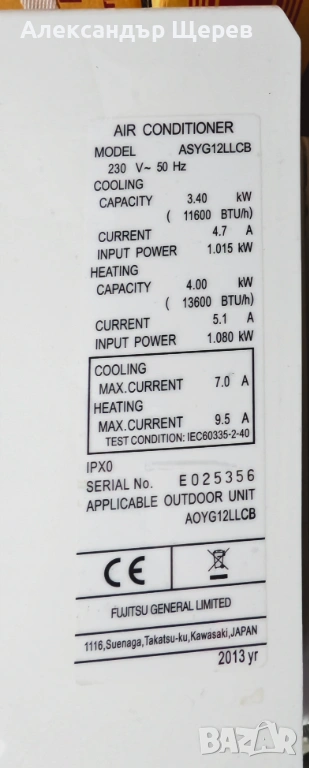 Fujitsu ASYG12LLCB/AOYG12LLCB (инверторна сплит система) → Обява 53363450