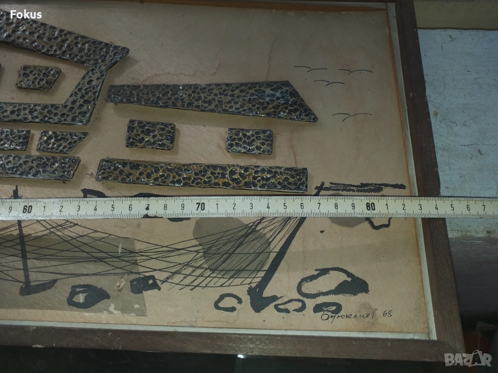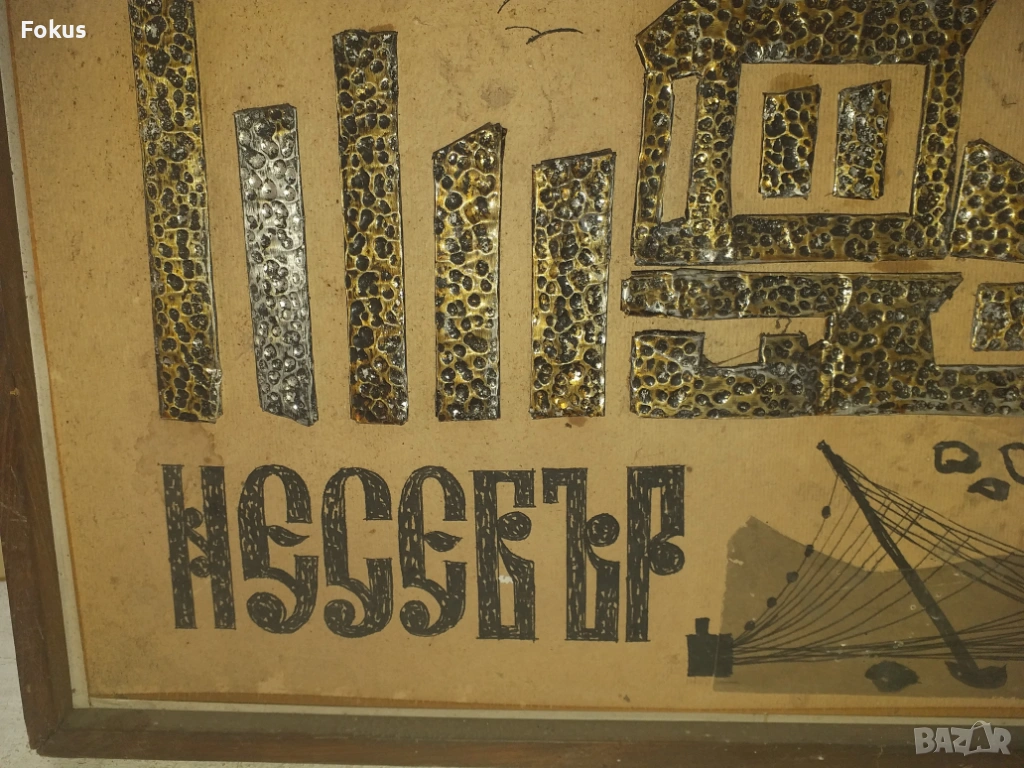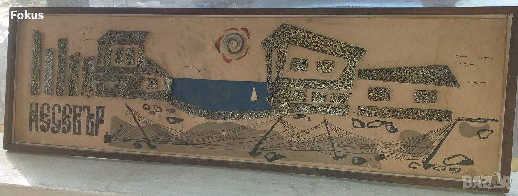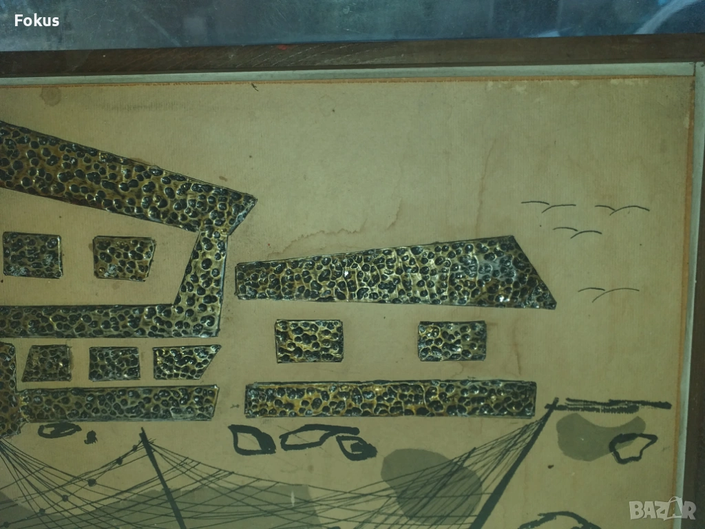 Рисувана със залепени метални пластинки върху картона