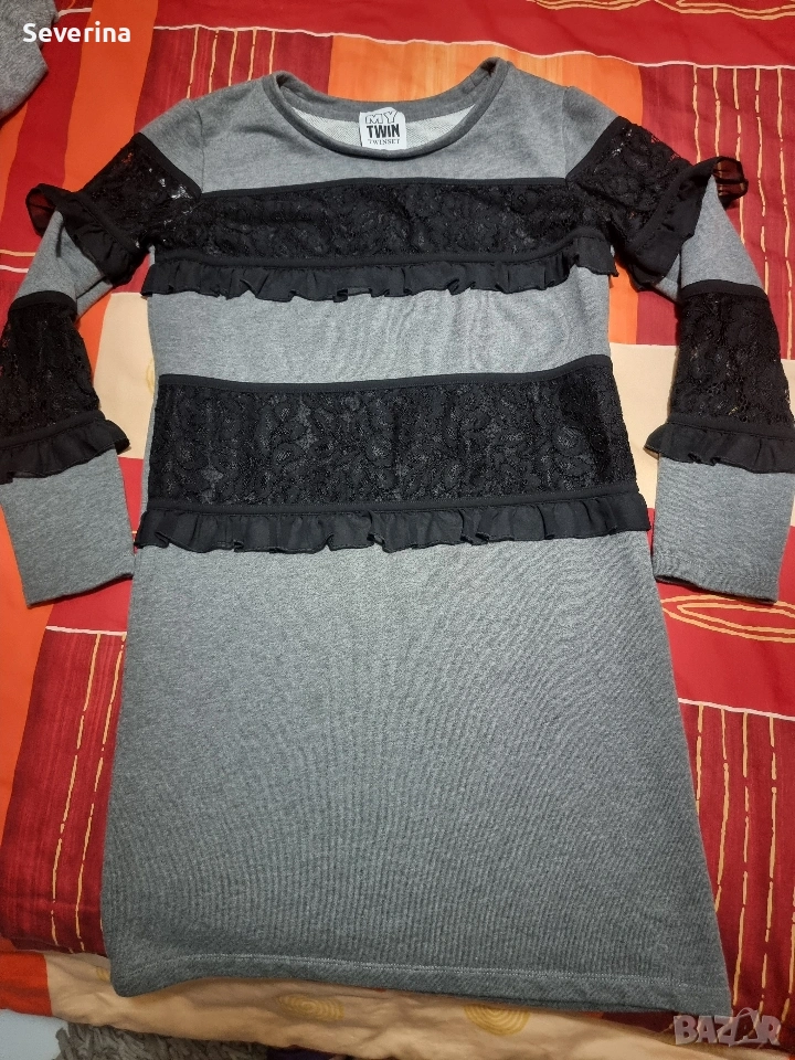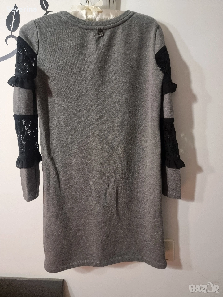 Оригинална рокля на Twinset, в перфектно състояние, като нова.Може да се носи като рокля и като туника с клин. По етикет е хs размер, но ето точни размери:от рамо до рамо 36,от мишница до мишница 44,в областта на талията е 42,долу е 46,дължина на ръкава 51,дължина на роклята 77 см.