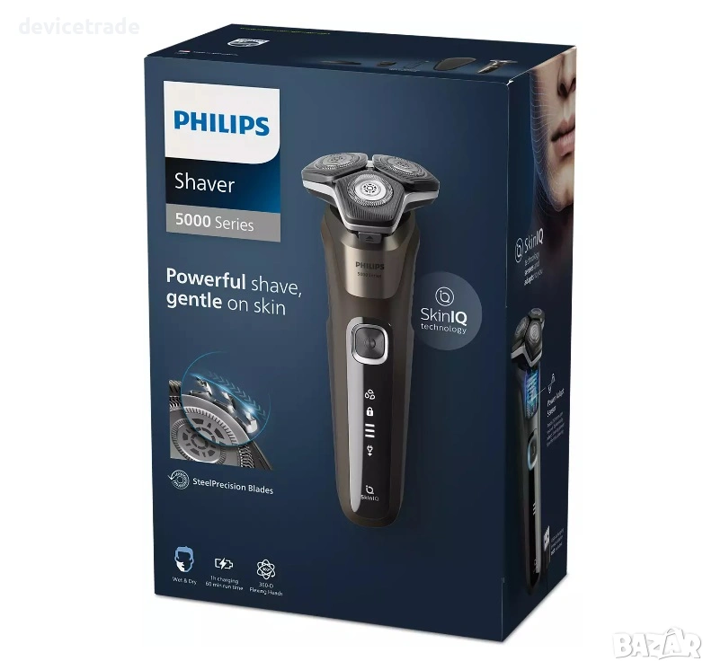 Бръснете се без кабел до 60 минути след едно пълно зареждане.