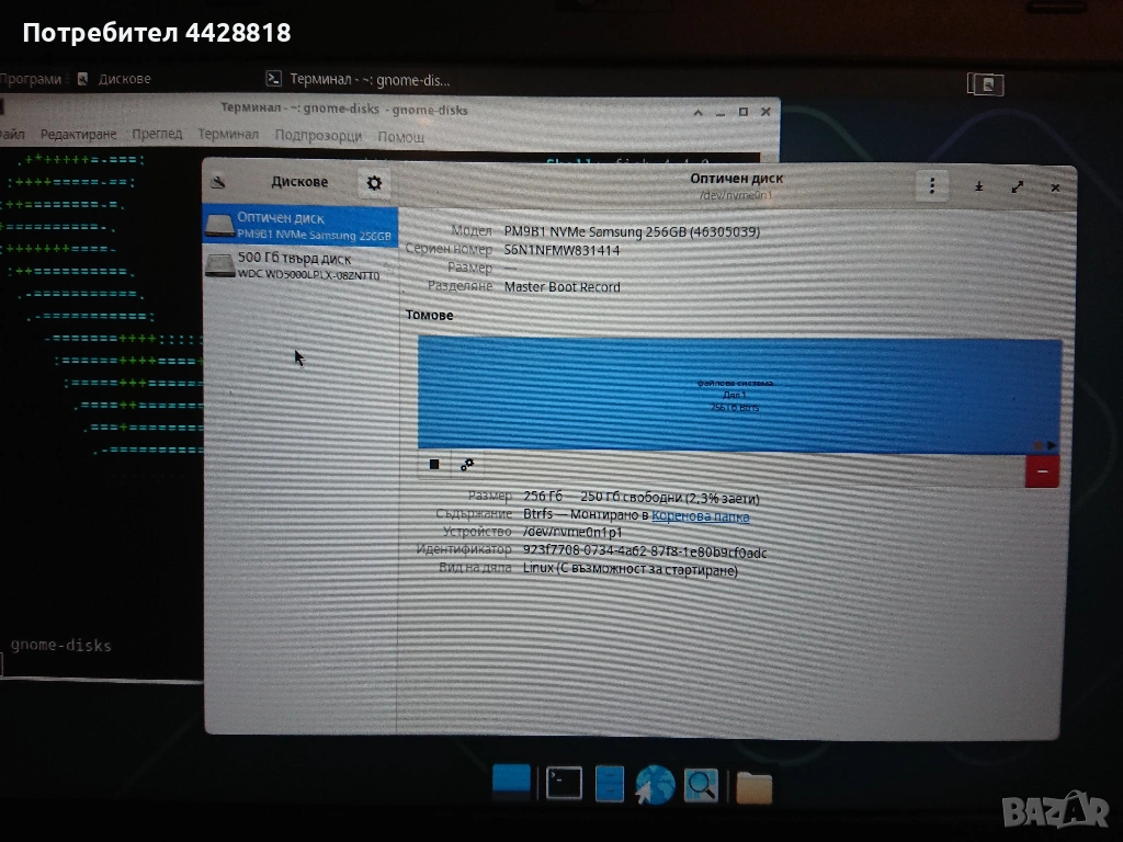 COREBOOT SKULLS SEABIOS е направен основно, за да може в слота ExpressCard да се използва преходник за NVME SSD, затова в лаптопа има два диска: SSD 256 GB за операционната система и HDD 500 GB за съхранение