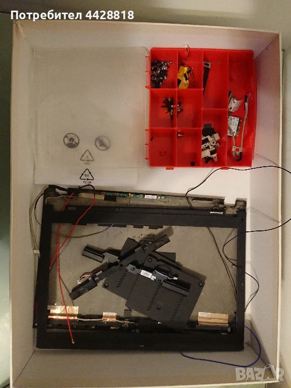 С лаптопа подарявам и множество резервни части, като CMOS батерии, Wi-Fi/Bluetooth адаптери, говорители, задна капачка и други, видими на снимките.