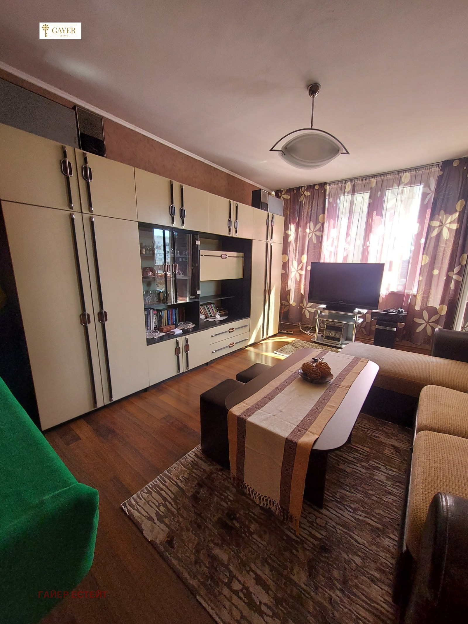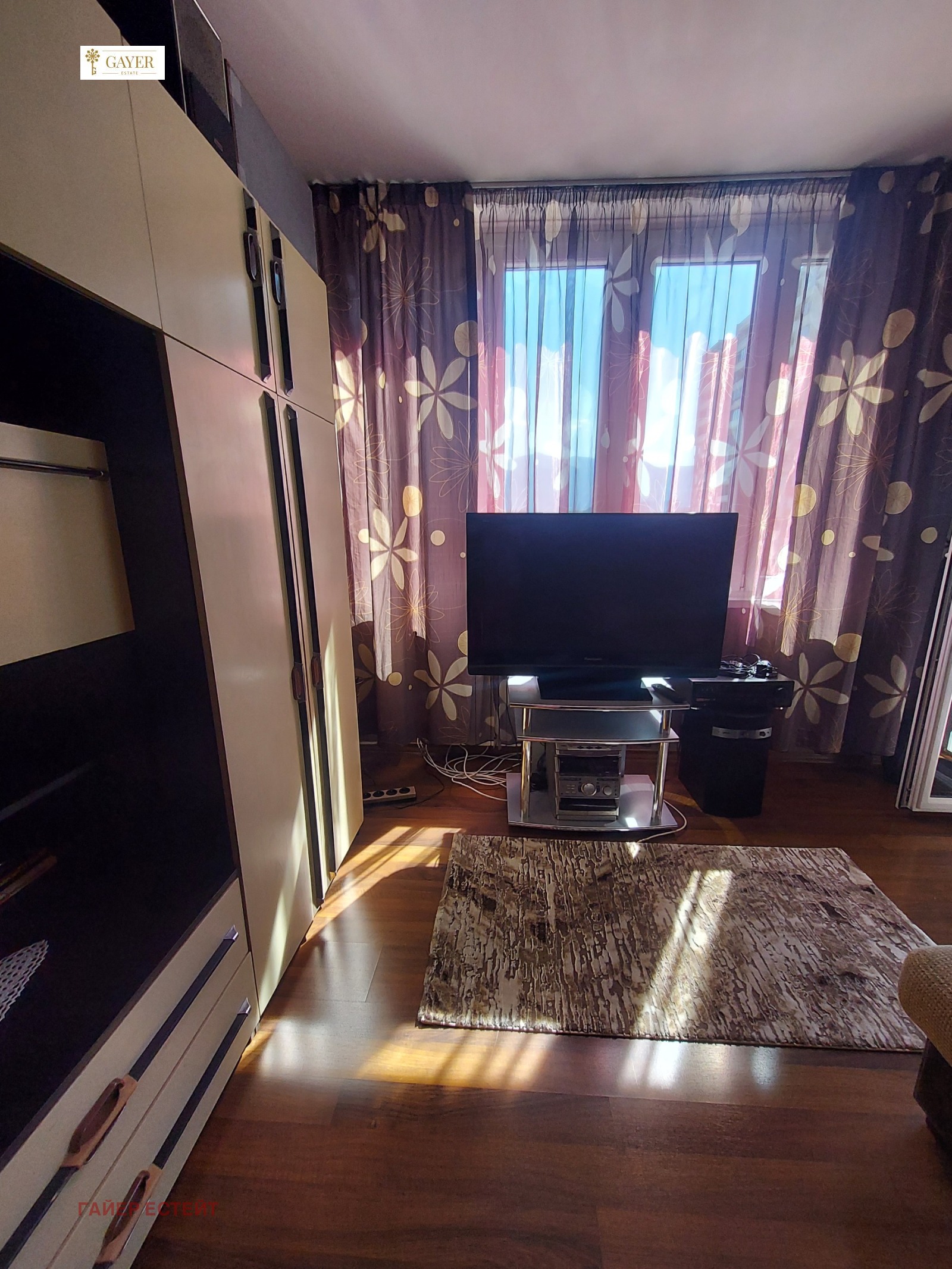 Агенция за недвижими имоти ГАЙЕР ЕСТЕЙТ отдава под наем обзаведен двустаен апартамент с отделна кухня в сграда ЕПК в зона B-5 и близо до бул Ал. Стамболийски. Общите части са поддържани и достъпът в сградата е ограничен. Жилището е със следното разпределение: коридор, хол, спалня, кухня и баня с тоалетна. Тераса, тип лоджия,на която се излиза от хола и спалнята. Изложение на жилището: юг и изток. В близост са спирки на градски транспорт, метро, детска градина, училище, търговски обекти, МОЛ. Имотът е обзаведен със всичко необходимо. Отдава се дългосрочно, за предпочитане на семейство. Не се допускат домашни любимци. Ключ в агенцията.