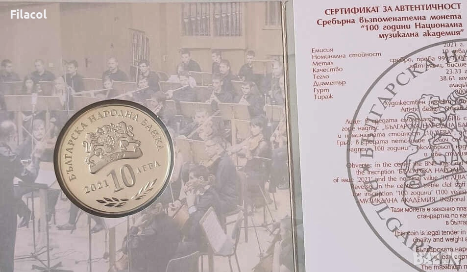 10 лева 2021 година 100 г. Национална Музикална академия → Обява 53363908