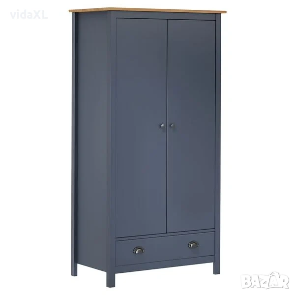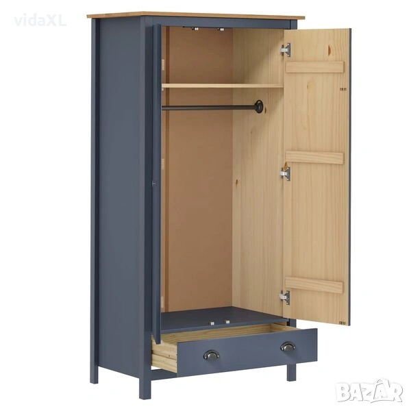 vidaXL Гардероб с 2 врати Hill сив 89x50x170 см борово дърво масив(SKU:288949)