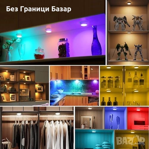 Нови 3 броя RGB LED спот лампи за шкаф/гардероб, дистанционно, 4 нива, таймер