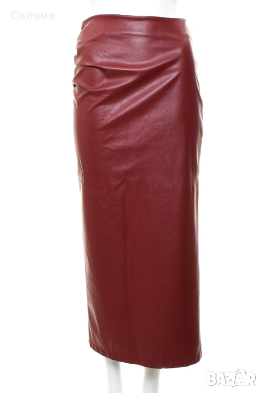 Нова червена дълга права лъскава кожена пола "Shein" / "Шейн", размер S → Обява 53364320