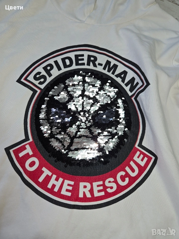 Детски дрехи в размери 146-152 см, в6ключващи дънки и суитчер., Белият е с на LC WAIKIKI с пайети Спайдермен. Използвани са но отлично запазени , направо нови