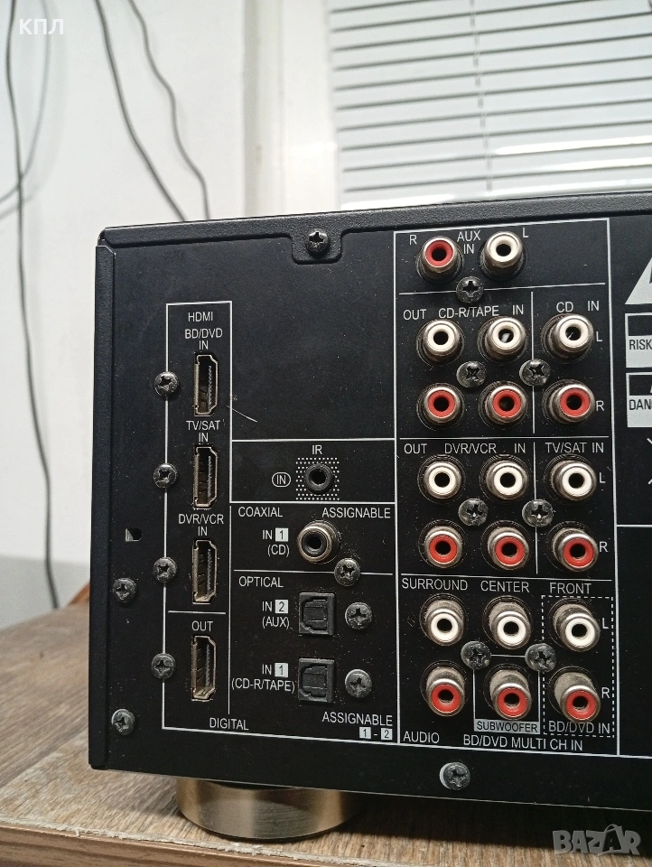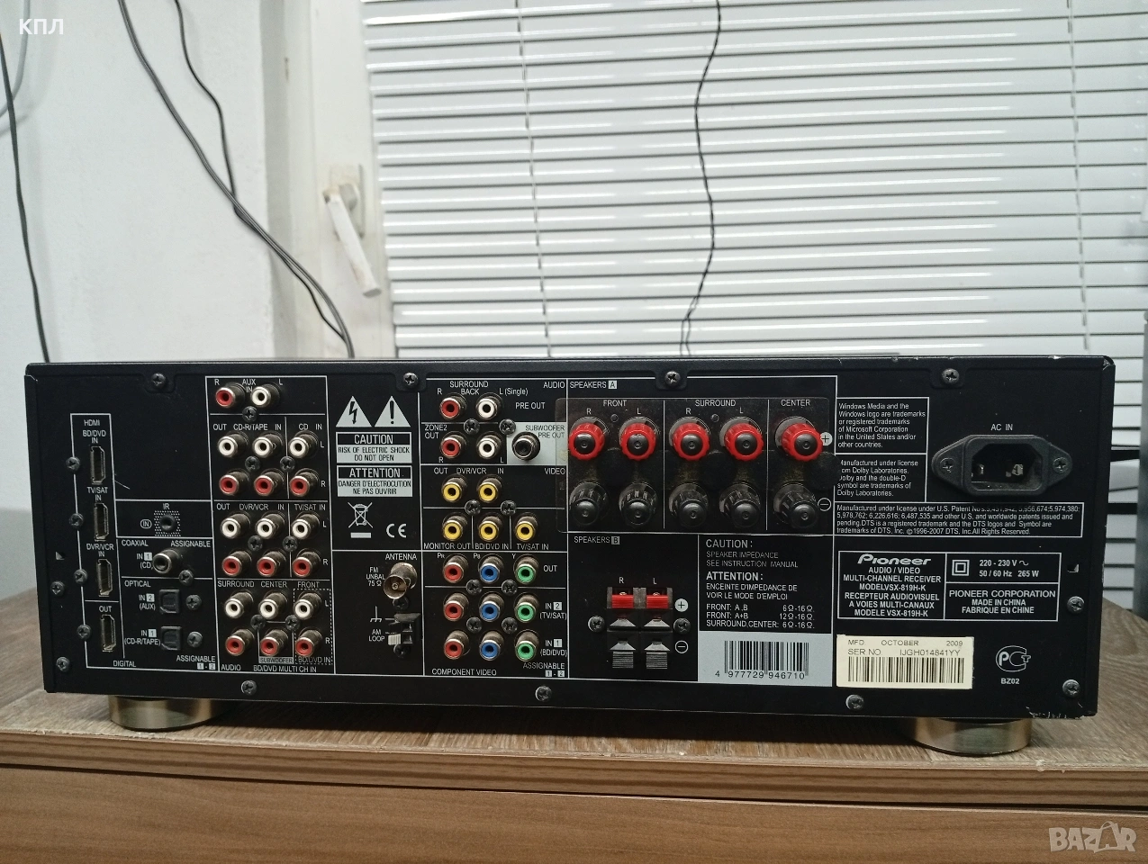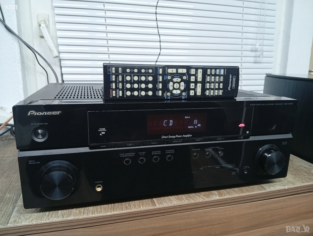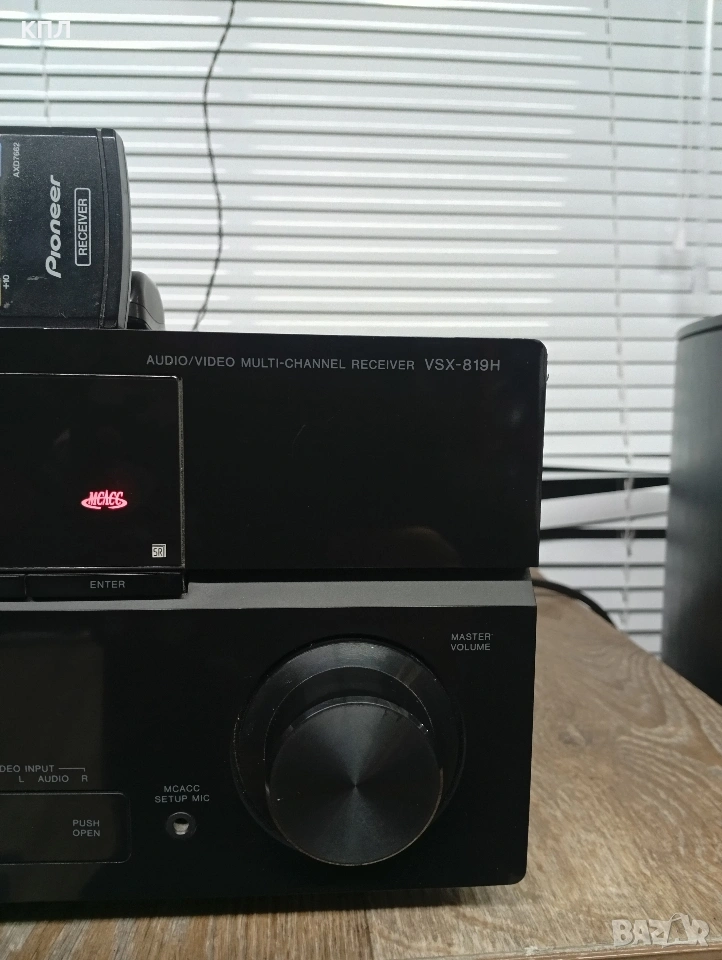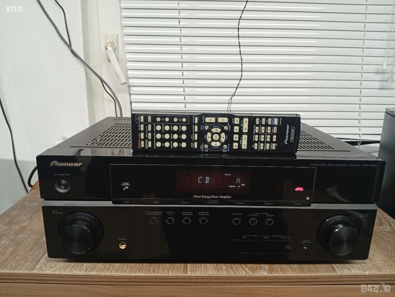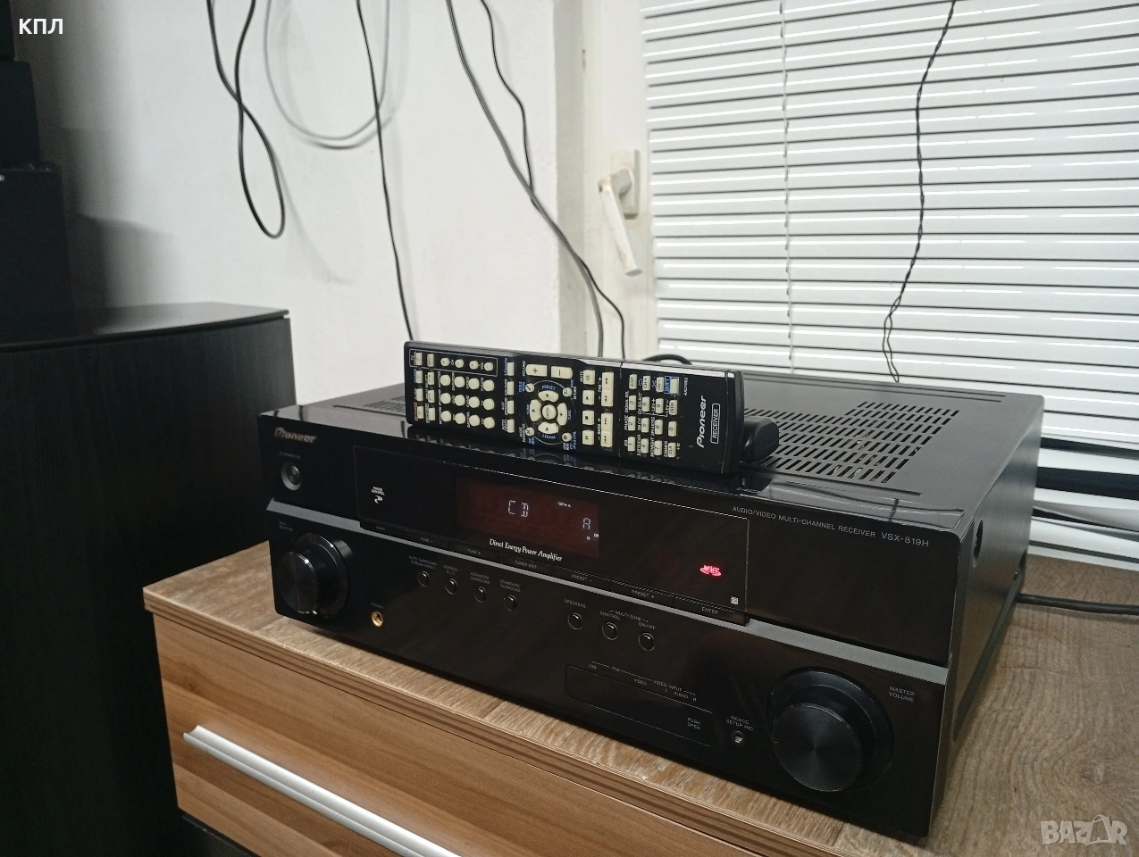 Продавам Pioneer VSX-819H в отлично техническо и визуално състояние 5.1-канален A/V ресивър за домашно кино, който поддържа Dolby TrueHD и DTS-HD Master Audio декодиране, HDMI комутация (3 входа/1 изход) и разполага с USB вход на предния панел за свързване на iPod/iPhone при интерес може да се види и тества на място. Характеристики: Канали: 5.1-канален съраунд звук. Мощност: 110 вата на канал (при 8 ома, 1 kHz, 0.05% THD). Аудио декодиране: Включва поддръжка на формати с висока резолюция като Dolby TrueHD, Dolby Digital Plus, DTS-HD Master Audio и DTS-HD High-Resolution Audio. Входове/Изходи: Разполага с 3 HDMI входа и 1 HDMI изход (1080p pass-through), 2 оптични и 1 коаксиален цифров аудио вход, както и USB 2.0 порт на предния панел за директна връзка с Apple устройства. Технологии за подобряване на звука: Включва MCACC (Multi-Channel Acoustic Calibration System) за автоматично калибриране на високоговорителите според акустиката на стаята и Advanced Sound Retriever за подобряване на качеството на компресирани аудио формати (MP3, WMA, AAC). Мулти-рум възможности: Разполага със Zone 2 изход за възпроизвеждане на отделен стерео източник в друга стая.