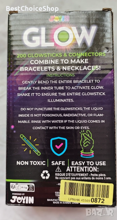 Пръчиците се предлагат в различни ярки цветове, включително жълто, оранжево, розово, лилаво, зелено, синьо и червено. Те могат да бъдат свързани, за да образуват гривни и колиета, използвайки конектори.
