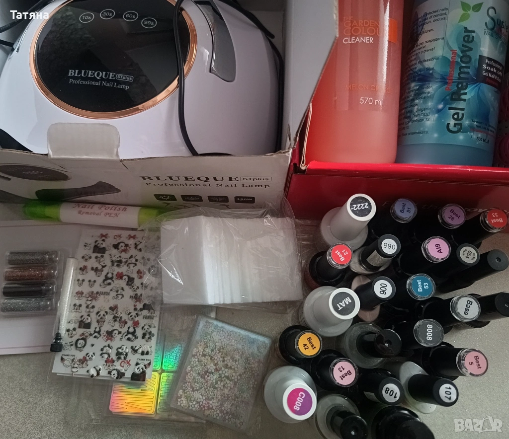 + Много подаръци: гел лакове, база, топ, стикери, брокат, лакочистител, тампони и други!