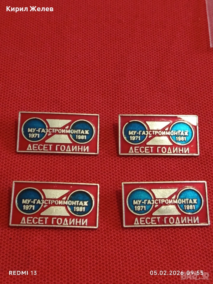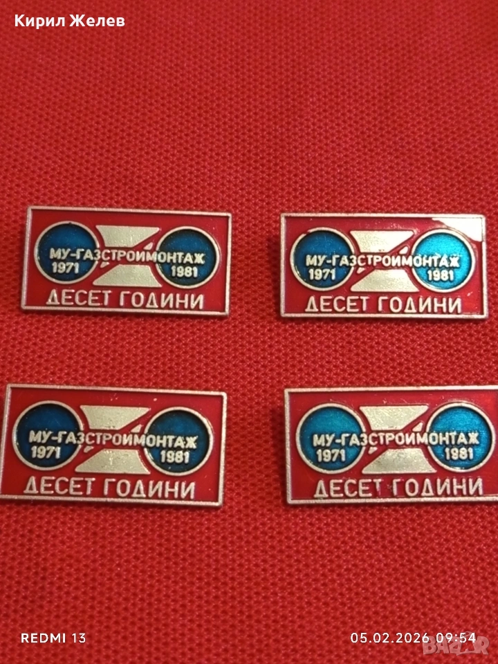 Четири значки 10г. МУ- ГАЗСТРОЙМОНТАЖ за КОЛЕКЦИЯ ДЕКОРАЦИЯ 53499