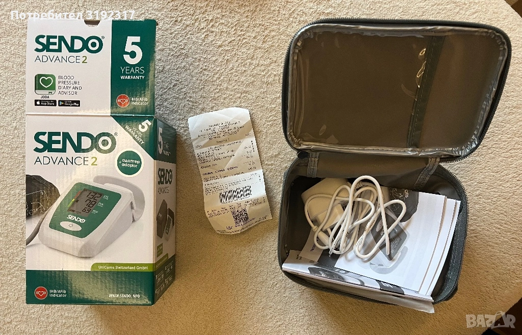 Апарат за кръвно налягане Sendo, 5 години гаранция, захранване: мрежово и с батерии, използван само веднъж
