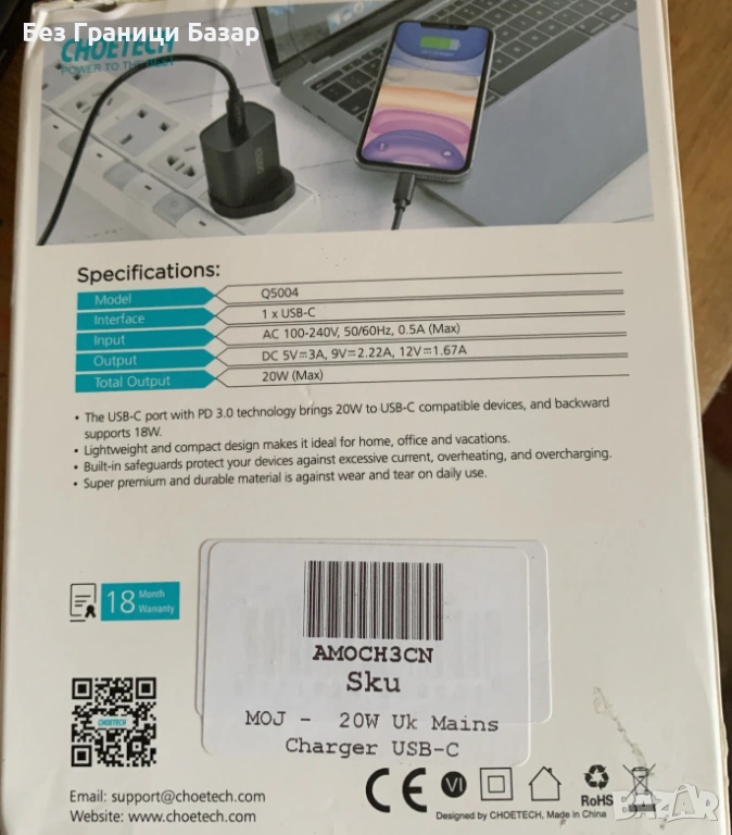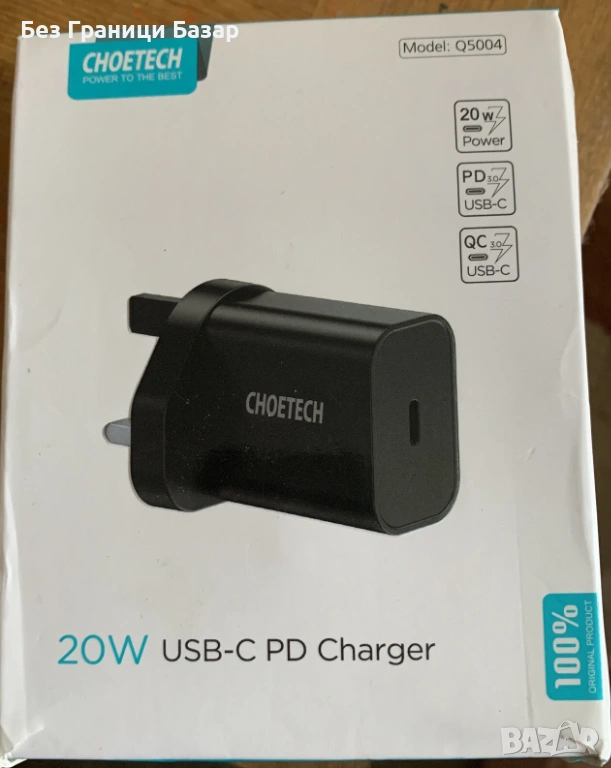 Ново CHOETECH 20W USB-C зарядно адаптер за iPhone Samsung зареждане телефон → Обява 53364846