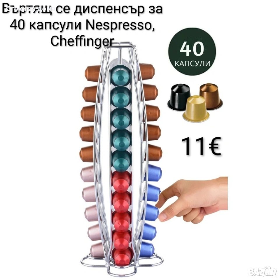 Въртящ се диспенсър за кафе Cheffinger за капсули Nespresso – капацитет 40 капсули