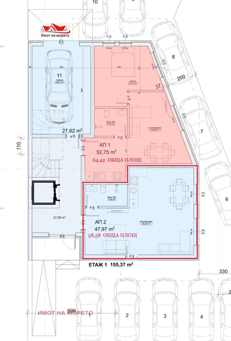 Имот на морето продава директно от инвеститора и без комисионна в гр. Приморско ЕДНОСТАЕН АПАРТАМЕНТ, с площ 58.58 кв.м, разположен на първи етаж в нова бутикова сграда, със следното разпределение: просторна дневна с кухненски бокс и санитарен възел. Сградата се намира на първа линия в южната част на гр. Приморско само на 50м. от плажа! Разполага с асансьор, парко места и енергиен клас А+ по стандарт от 2024г.
