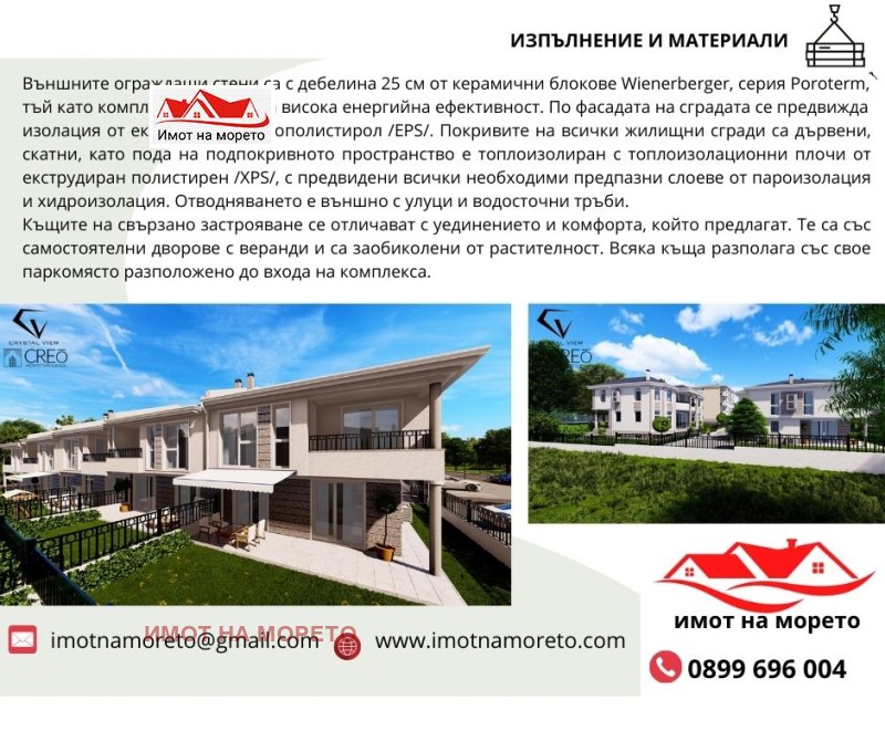 ИМОТ НА МОРЕТО продава самостоятелни луксозни двуетажни къщи, в затворен комплекс CRISTAL VIEW - кв. Крайморие, гр. Бургас.