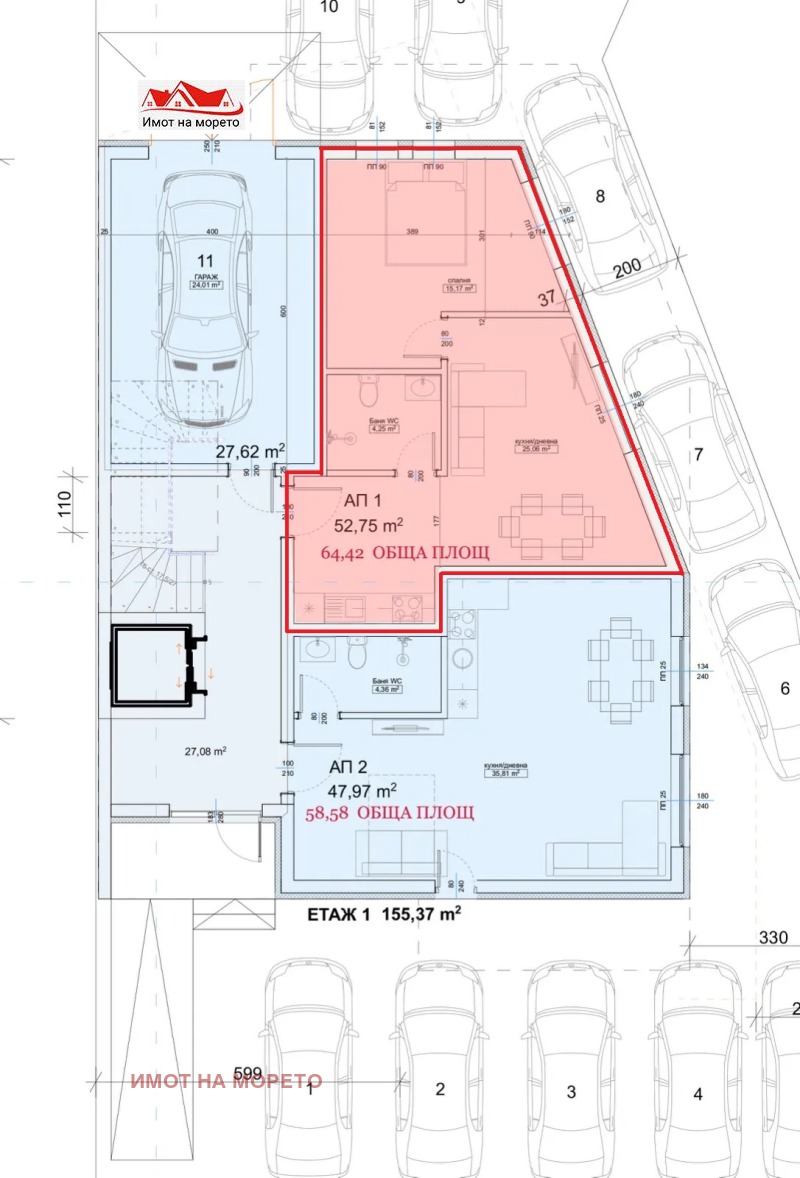Имот на морето продава директно от инвеститора и без комисионна в гр. Приморско ДВУСТАЕН АПАРТАМЕНТ, с площ 64.42 кв.м, разположен на първи етаж в новострояща се бутикова сграда, която ще бъде завършена през 2025г. със следното разпределение: дневна с кухненски бокс, спалня и санитарен възел. Сградата се намира на първа линия в южната част на гр. Приморско само на 50м. от плажа! Разполага с асансьор, парко места и енергиен клас А+ по стандарт от 2024г.
