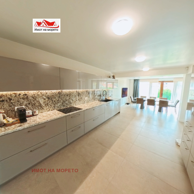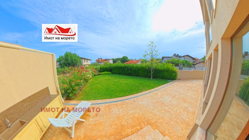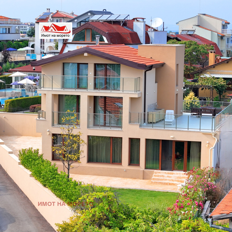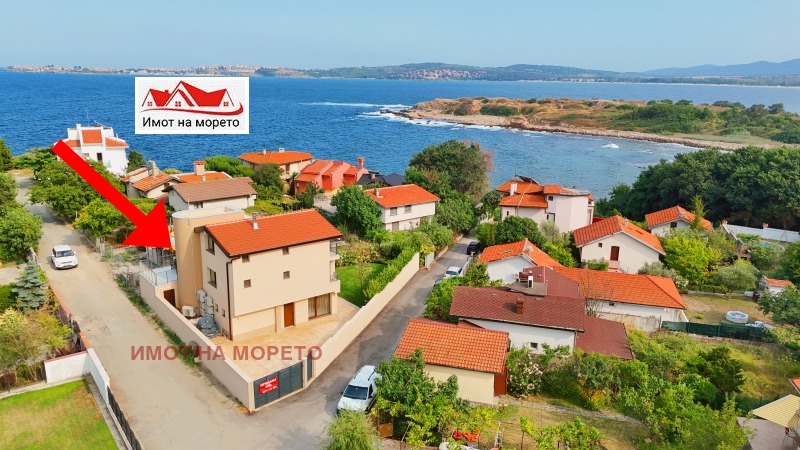 Имот на морето продава масивна триетажна къща , луксозно обзаведена, находяща се във вилна зона Червенка, град Черноморец, община Созопол на 50 метра от морето и в непосредствена близост до плаж Градина ведно с дворно място с площ от 450 кв.м. и РЗП на къщата 300 кв.м. На първи етаж имотът се състои от всекидневна с кухня, тоалетна, складово помещение, мокро помещение ведно с пералня и сушилня с площ на етажа от 94 кв.м., оборудвана с най-висок клас електроуреди и поръчково обзавеждане от Италия. Втори етаж е с площ от 48 кв.м. и се състои от две спални, всяка от които със собствена баня, като основната спалня е с просторна тераса и с чудесен изглед към морето и Созопол, на етажа се намира и огромна тераса от 46 кв.м. с изглед към морето, оборудвана с кухненски бокс с гранитни плотове. Трети етаж е с площ от 48 кв.м. и се състои от две спални, всяка от които със собствена баня, като основната спалня е с просторна тераса и с чудесен изглед към морето и Созопол. Спалните в къщата са обзаведени с луксозен тип легла и матраци. На покрива е обособена панорамна тераса. Всяко помещение в къщата е оборудвано с най- висок клас климатик марка Daikin, а използваната дограма е PVC петкамерна на SALAMANDER . Дворът на къщата разполага с две паркоместа, с изградена масивна ограда, а озеленяването е внос от Гърция с проект от ландшафтен архитект и изградена поливна система с часовников механизъм. В двора също така е обособен кухненски кът с гранитни плотове.