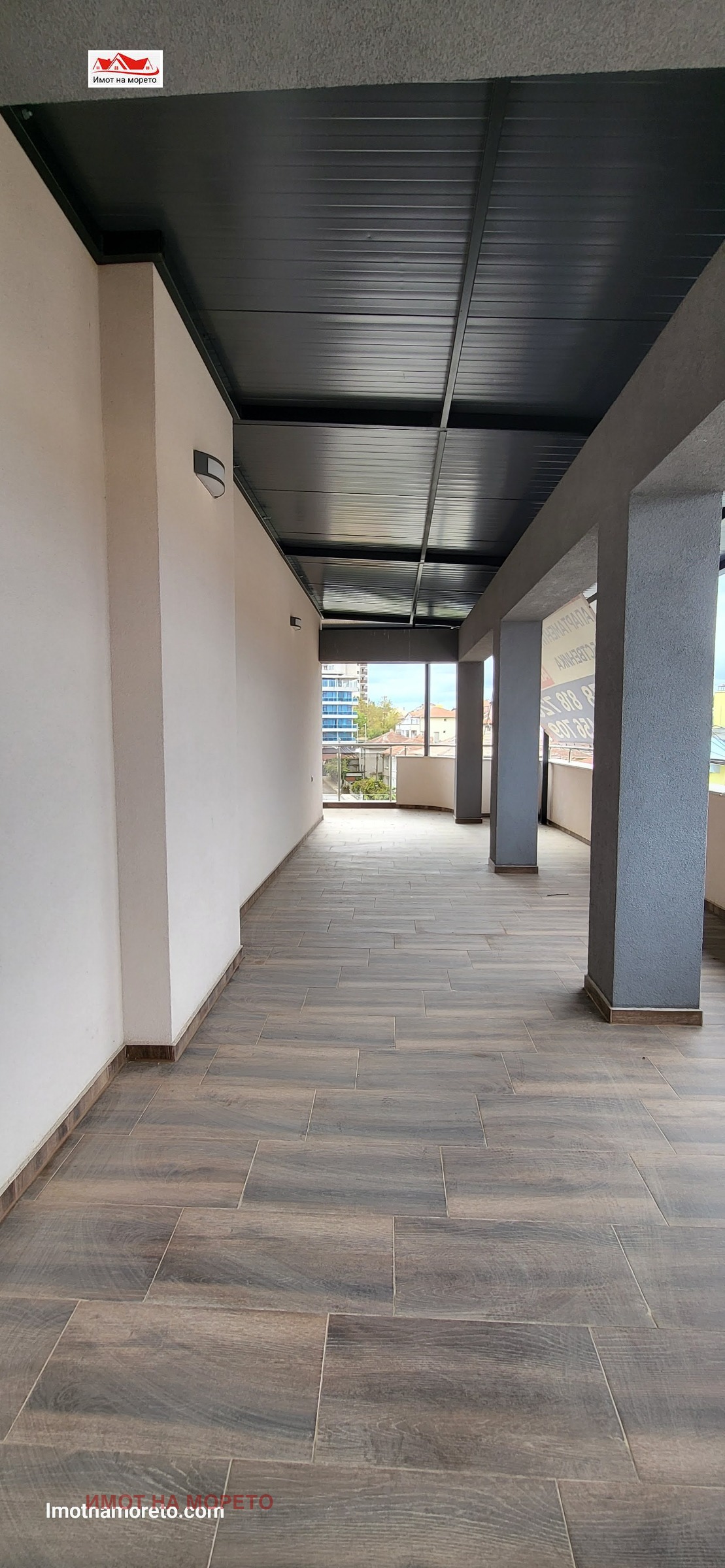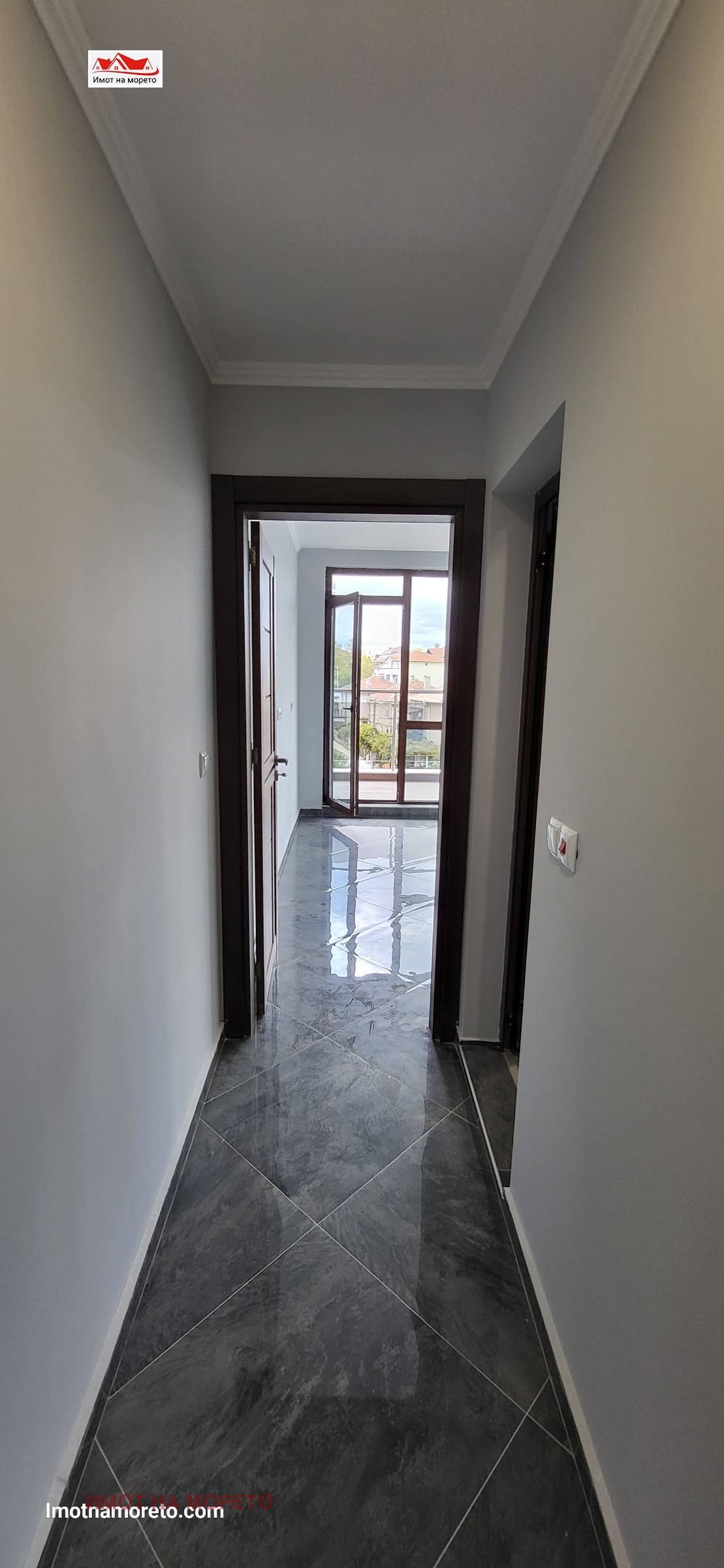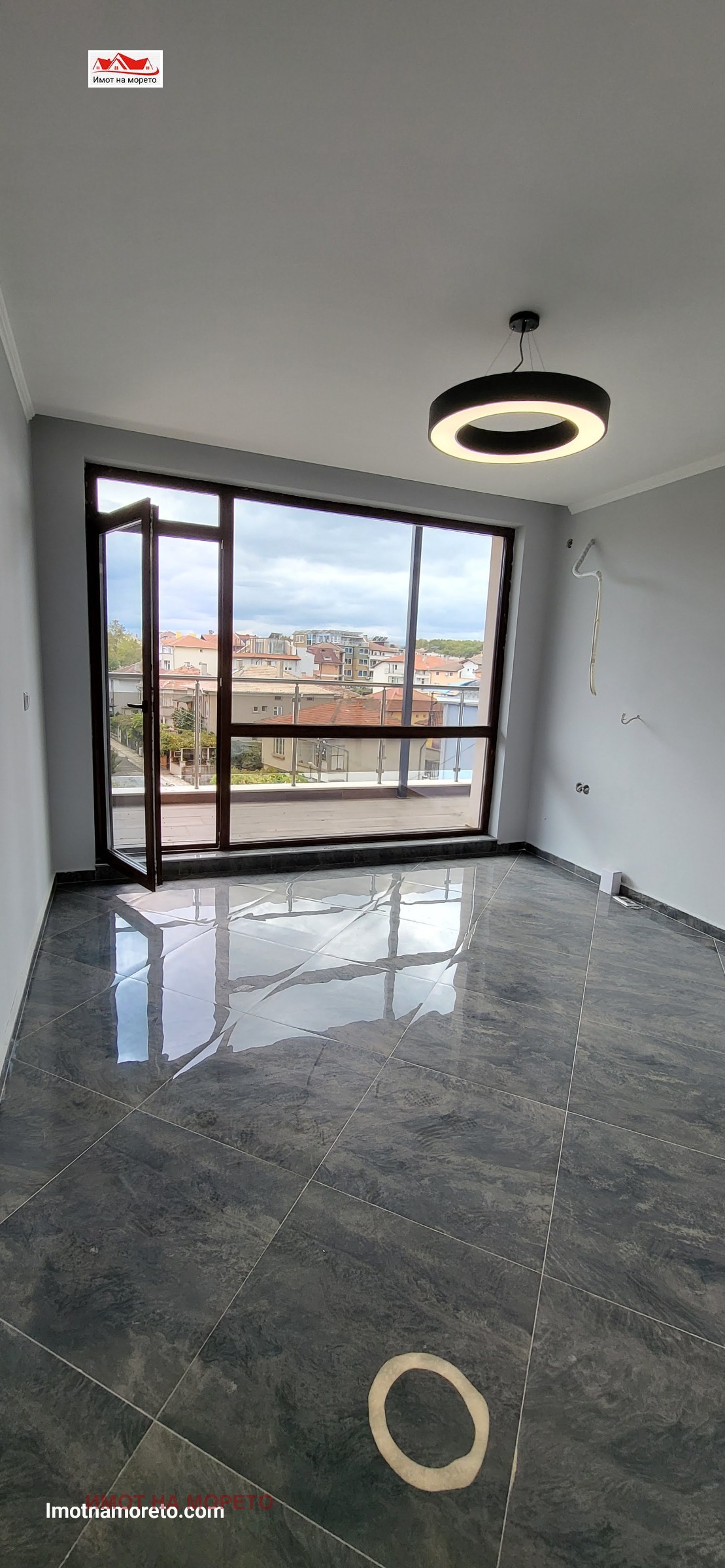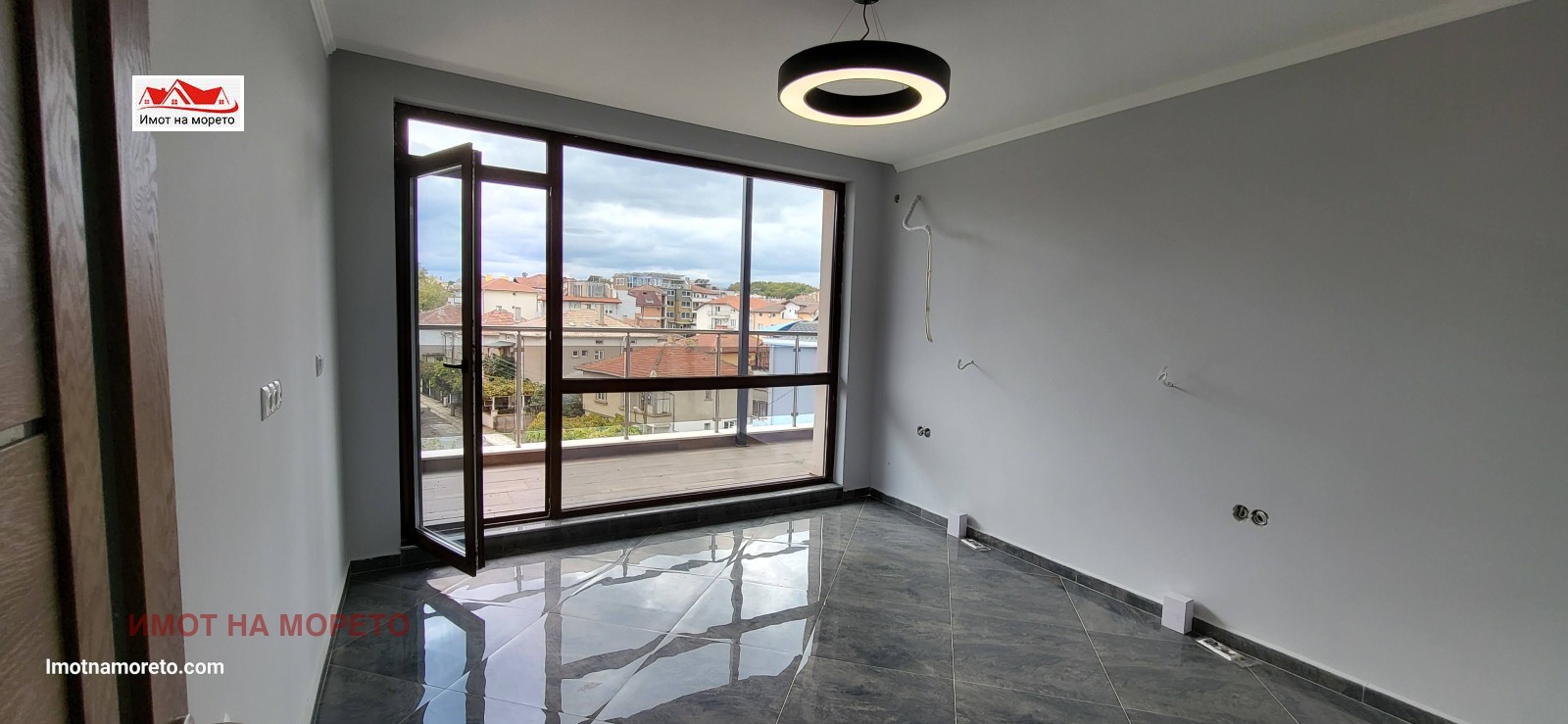 Апартаментът е разположен на четвърти етаж в нова четириетажна жилищна сграда намираща се в централната част на града, и на около 350м. от плажа.