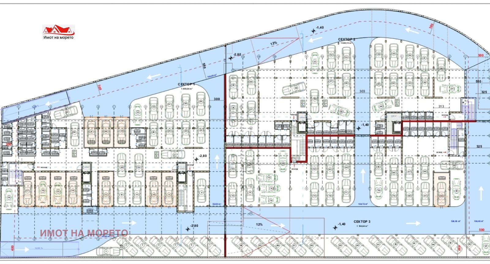 Към него може да се закупи гараж или паркомясто на цени започващи от 16 000 евро.