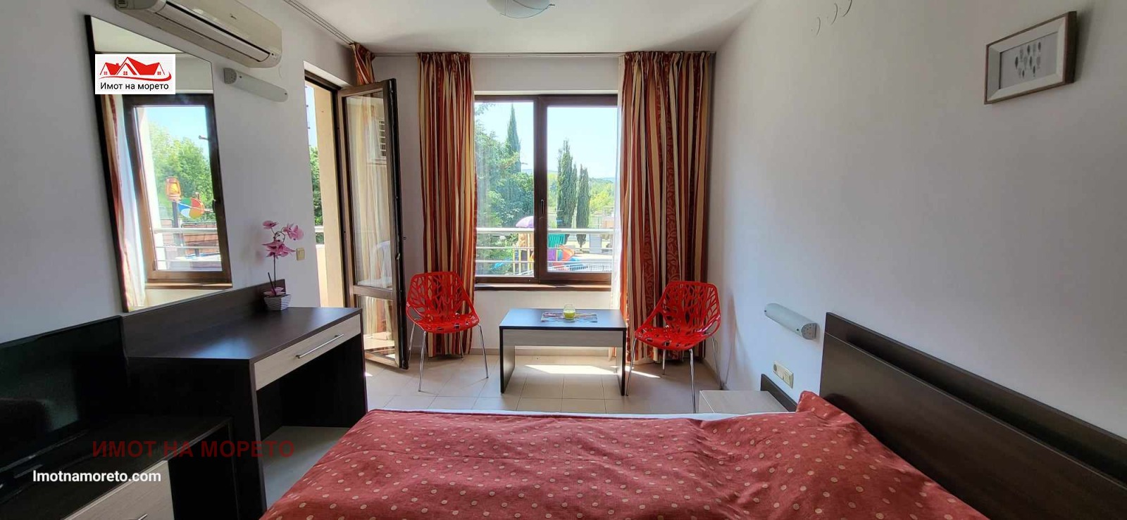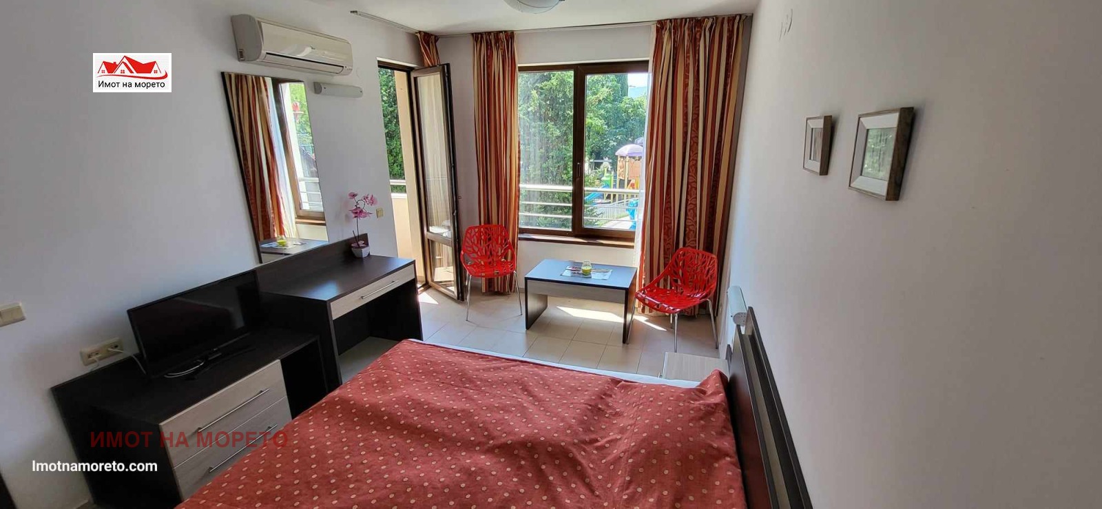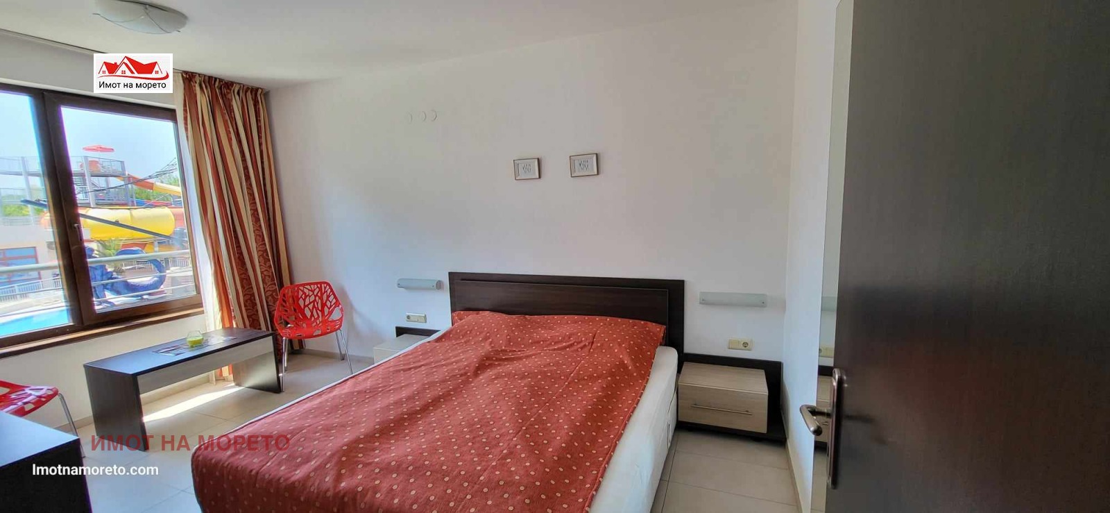Имот на морето продава обзаведен ЕДНОСТАЕН АПАРТАМЕНТ в гр. Царево. Апартамента е с площ 33,31кв.м, разположен е на втори жилищен етаж със следното разпределение: коридор, дневна със спалня, санитарен възел и тераса, от която се разкрива гледка към аквапарка на комплекса. Сградата се намира в затворен комплекс с годишна такса поддръжка 12евро/кв.м. Комплексът предлага редица висококачествени услуги и забавления бар до плажа, анимация за деца и възрастни, лоби бар, ресторант, сауна, фитнес, спортно игрище, детска площадка, аквапарк, паркинг, асансьор, безплатен WiFi и др.. Намира се на 80м. от плажа и на 250м. от центъра на града.