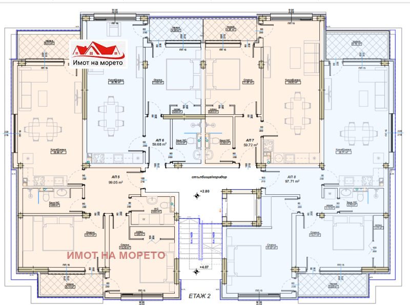 ИМОТ НА МОРЕТО продава ТРИСТАЕН АПАРТАМЕНТ в новострояща се бутикова четириетажна жилищна сграда, в гр. Царево, местността Белия бряг .