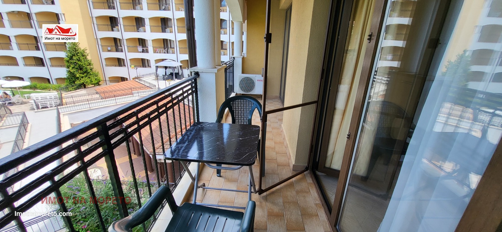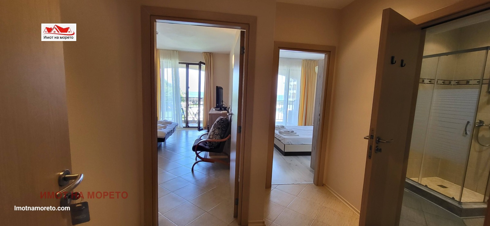 Апартаментът е с площ 71,55 кв.м, разположен на 2 етаж в жилищна сграда, на самия морски бряг на южния плаж в местността Нестинарка .