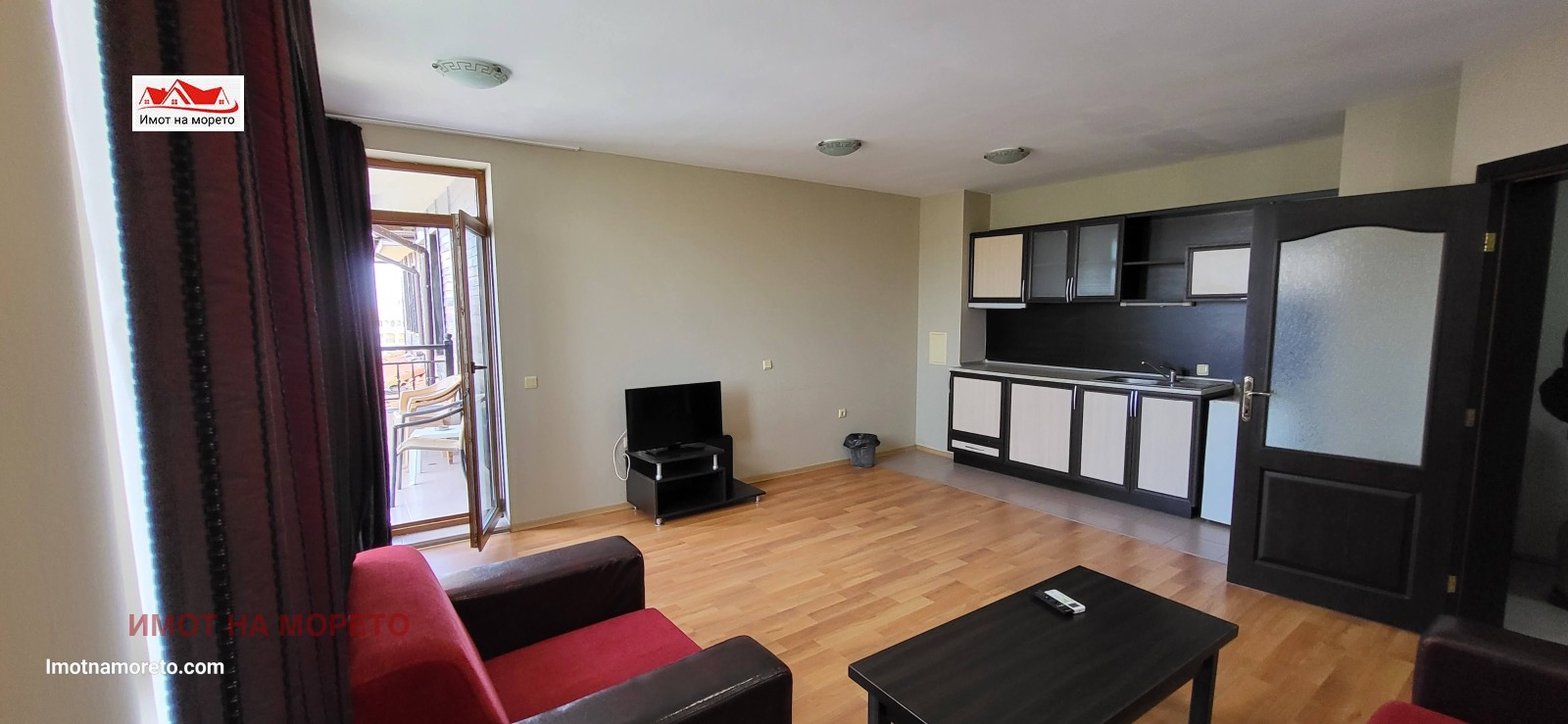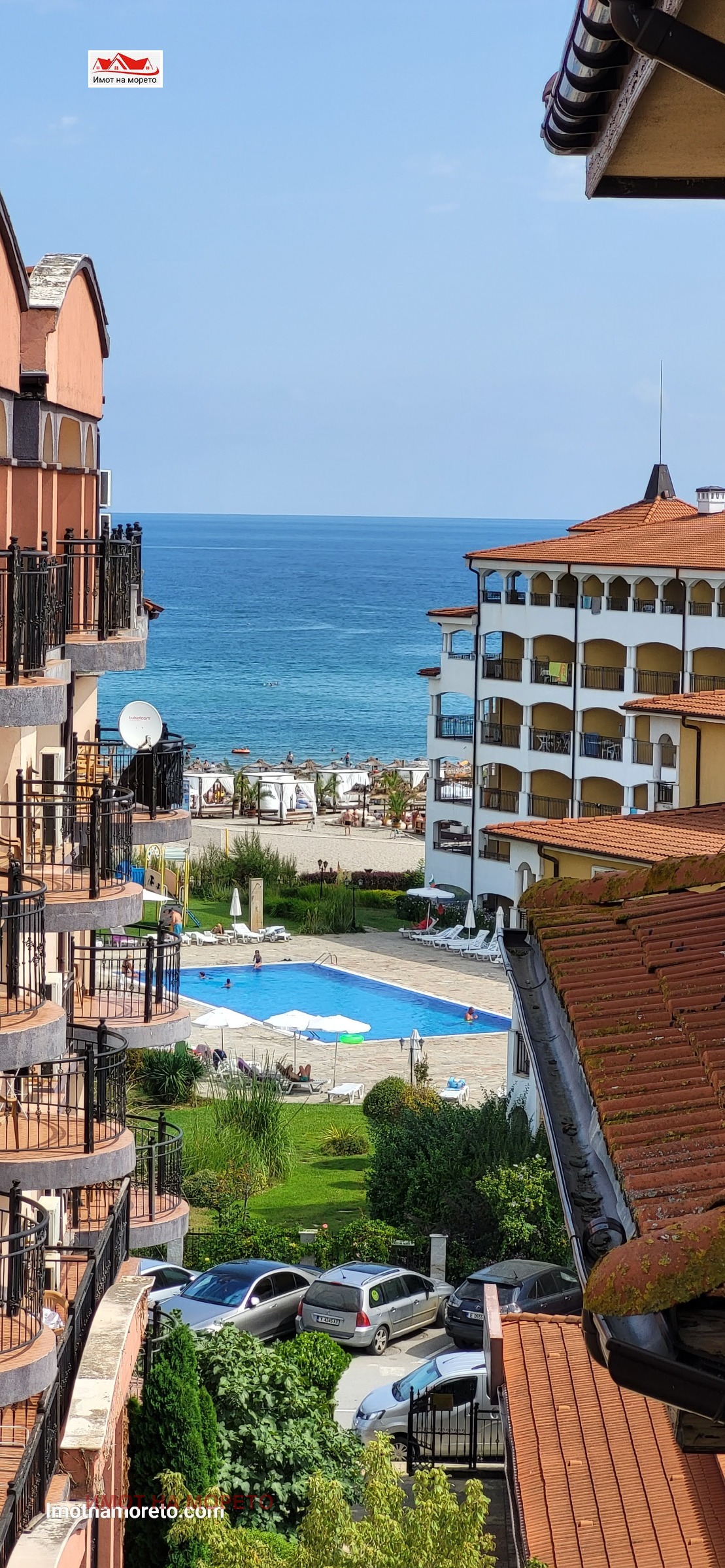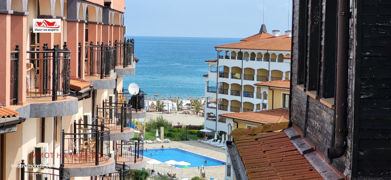 Имот на морето продава двустаен апартамент в гр. Царево. Апартаментът е с площ 68,50кв.м, разположен на 5 етаж в жилищна сграда, на самия морски бряг на южния плаж в местността Нестинарка . Сградата е част от затворен комплекс с годишна такса поддръжка 8 на кв.м. Комплексът предлага открит басейн, ресторант, паркинг, асансьор, безплатен WiFi, спа и увеселителен център . Удобствата се допълват от бар и съоръжения за водни спортове.