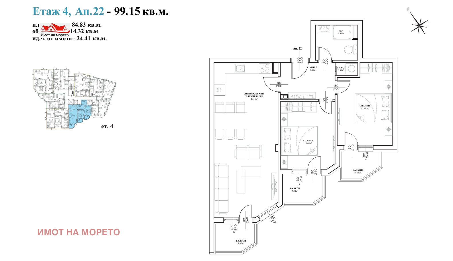 Обща площ: 🧩 99,15 кв.м.