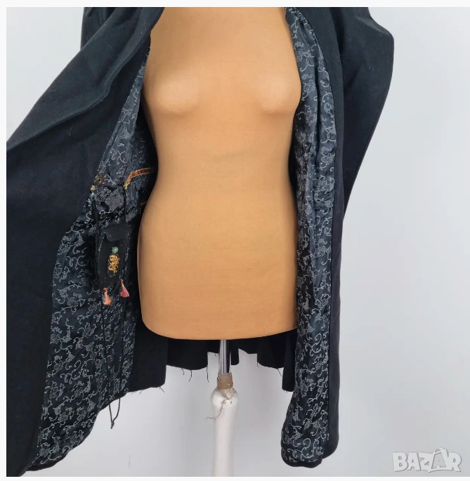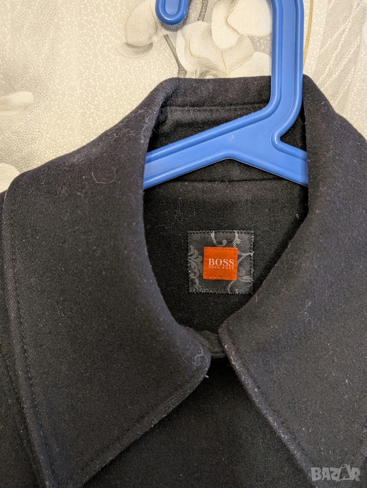 Елегантно черно вълнено палто от Hugo Boss с уникален дизайн. Палтото има асиметрично закопчаване с копчета отпред и подвижен колан на талията, който подчертава фигурата. Детайли като декоративни шевове и красива вътрешна подплата му придават ексклузивно усещане.