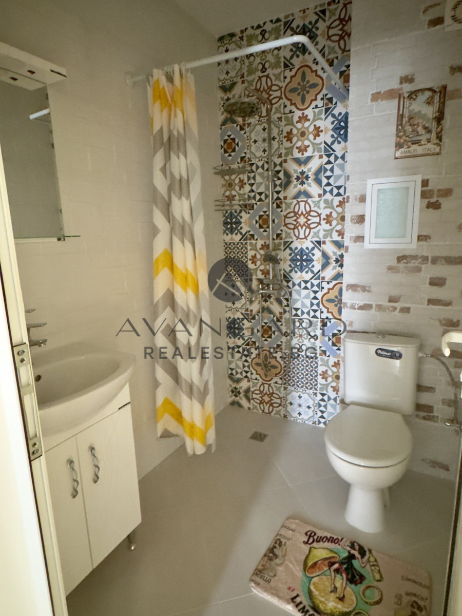 МАЛКА МОДЕРНА СГРАДА! ИЗЛОЖЕНИЕ ИЗТОК - ЮГ! Предлагаме Ви да закупите ОБЗАВЕДЕН ДВУСТАЕН АПАРТАМЕНТ! Имотът се състои от голям хол с кухненски бокс, просторна спалня, баня с тоалетна, входно антре и тераса. Жилището се продава напълно обзаведено, което Ви позволява да се нанесете веднага. Намира се в близост до всичко необходимо за живеене, което го прави чудесен избор за Вашият нов дом и отлична инвестиция с цел отдаване под наем.