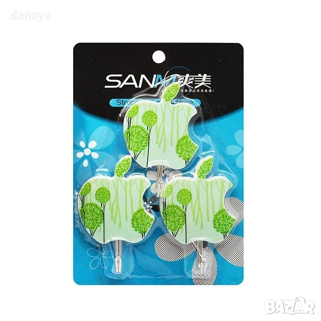 6389 Самозалепващи закачалки Ябълки, 3 броя
