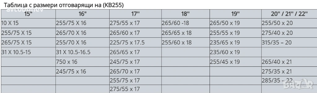 Вериги за сняг подходящи за джипове(4х4) и бусове - Меча стъпка (KB255) 15'' - 20'' 2бр./к-т.