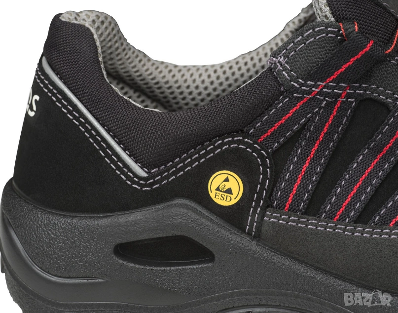 Подплатен ръб на халката, маслоустойчива външна подметка, антистатични свойства, вентилирана стелка, отговаря на IEC 61340-5-1 (ESD), двойни зони за омекотяване, светлоотразител, лека, водоотблъскваща