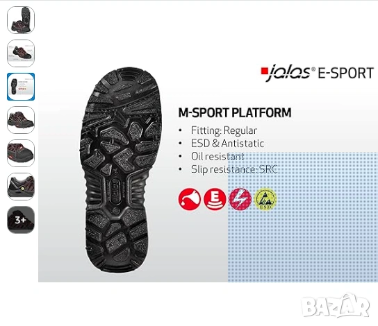 Jalas 1615 E-Sport, които са предпазни обувки с най-високо ниво на защита (S3). Те са леки, удобни и водоотблъскващи, проектирани за различни работни среди.
