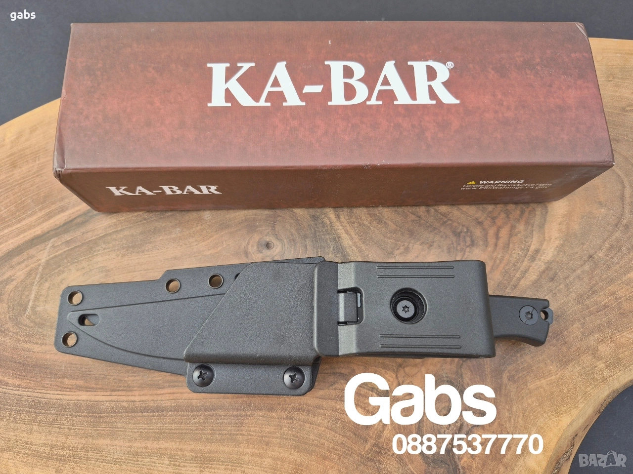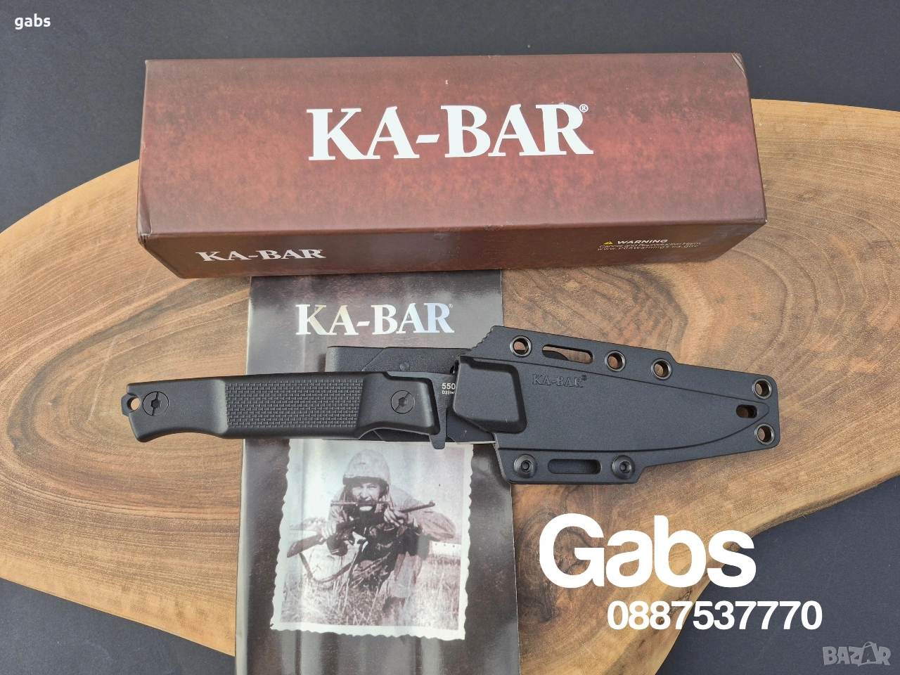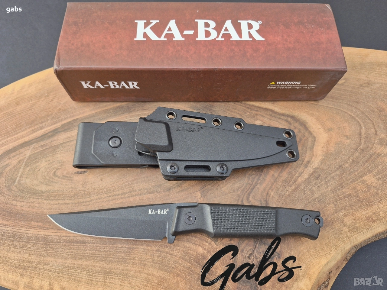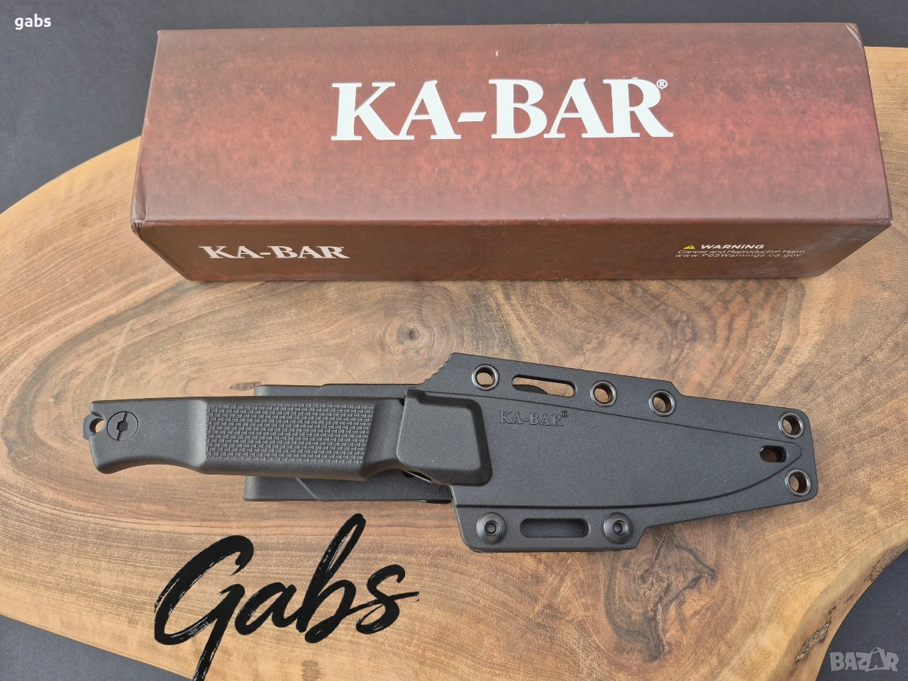 нож KA BAR 5500,с черно острие от стомана D2 и кания с щипка за колан.Дръжка от найлон,подсилен с фибростъкло,материал характеризиращ се с твърдост и висока устойчивост на удар.В допълнение има и отвор за връзка.