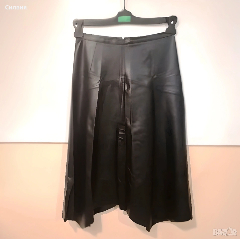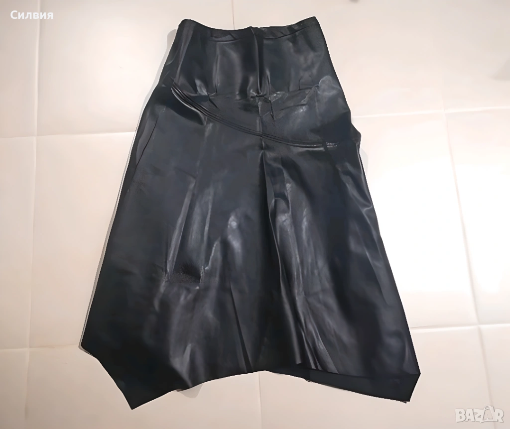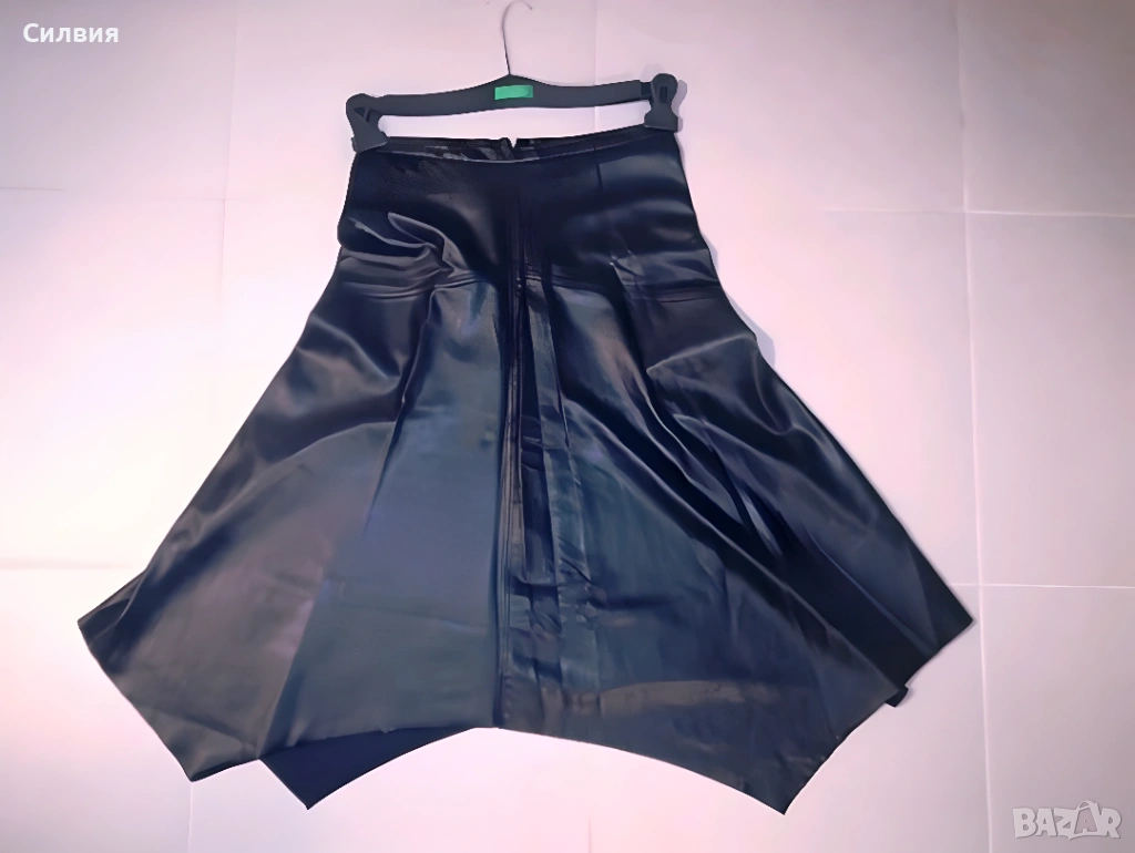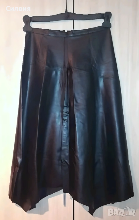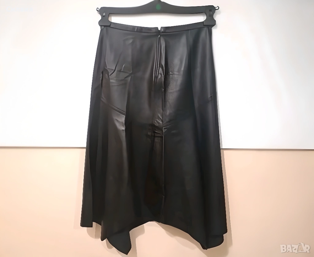 Дълга черна лъскава кожена пола "Zara" / "Зара" с асиметричен подгъв, размер М → Обява 53365691