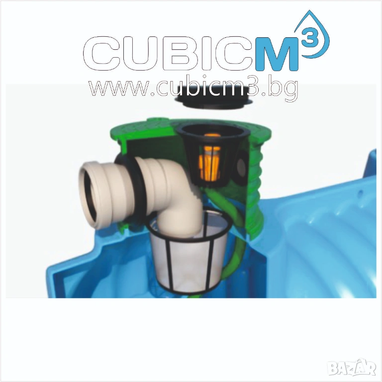 Резервоар за вода BOLT e предварително оборудвани с полиетиленов филтър за дъждовни води и бърза връзка.