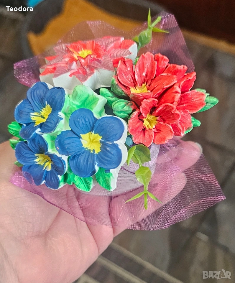 керамични фигурки и букети от керамика и оцветени с акрилна боя