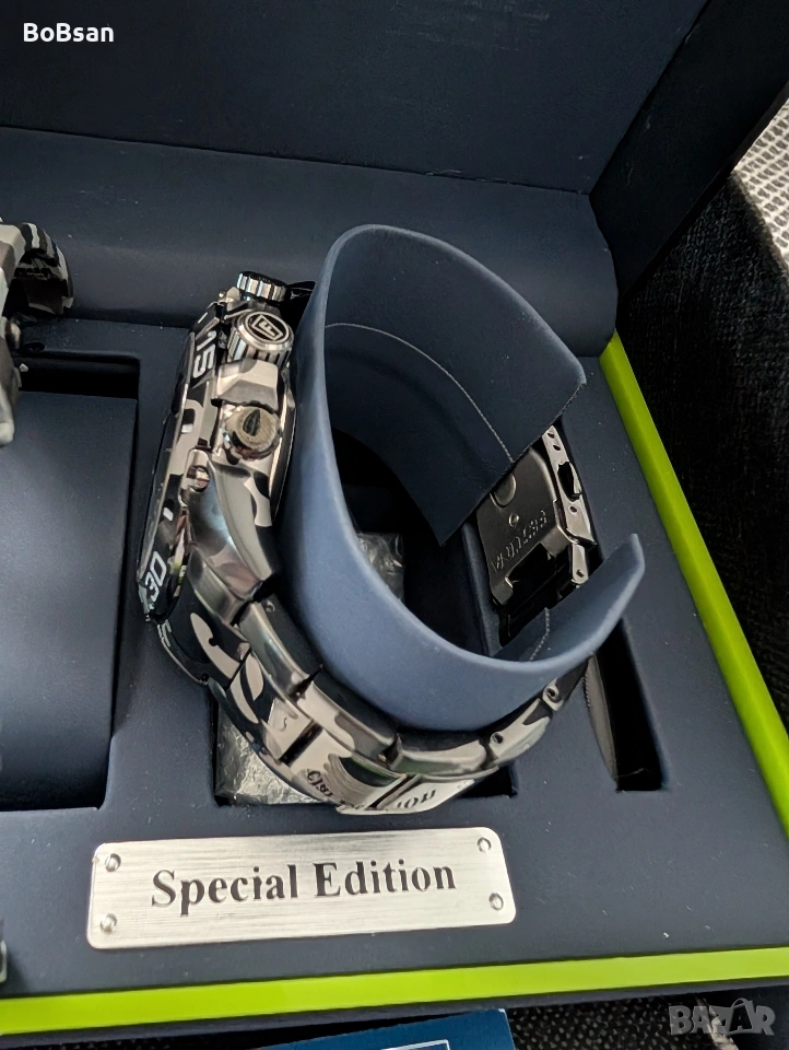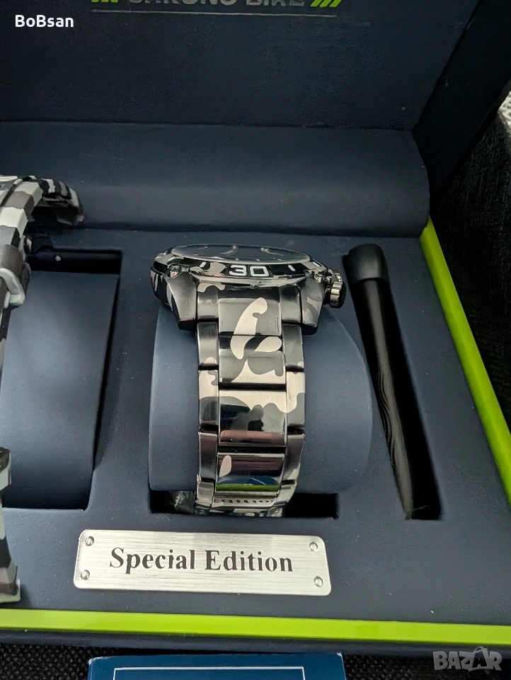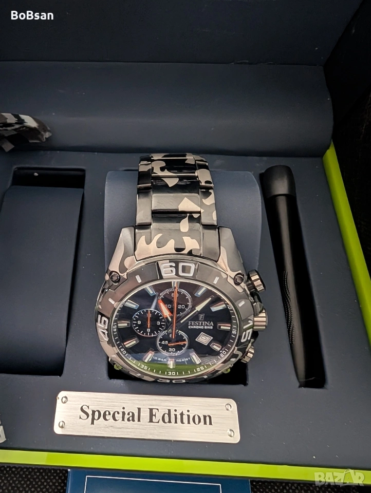 В свят, който никога не стои неподвижно, само малко неща успяват да се противопоставят на времето. Festina F20710/1 Special Edition Chrono е едно от тези изключения – почит към динамиката на съвременния човек, към приключенията, прецизността и стила. Този часовник е повече от просто инструмент за измерване на времето. Той е смело изявление срещу преходността и символ на неудържимия прогрес. Един поглед към този часовник е достатъчен, за да се види, че нищо не е оставено на случайността. Масивният корпус от неръждаема стомана с диаметър 46 мм му придава мощно присъствие, отразяващо духа на победителя. Черно-сивият камуфлажен дизайн , простиращ се върху корпуса и каишката, говори език на безкомпромисен стил – сливане на тактически финес и градски лукс. Здравите линии на корпуса хармонизират перфектно с полираните елементи от неръждаема стомана и смелите винтове, напомнящи за инструменти от моторните спортове. А след това е циферблатът – наситено черен като нощта , подчертан от светещи индекси, които осигуряват видимост дори в тъмното. Фино изработените хронографски подциферблати добавят нотка на техническа изтънченост, което прави този часовник истински часовник за мъже, които изискват съвършенство. В сърцето на този шедьовър е кварцовият механизъм Miyota 0S10 , надежден двигател за абсолютна прецизност. Независимо дали сте на пистата, в офиса или във вълнуващи приключения – този хронограф е в крак с вашето темпо. Функцията хронограф позволява прецизно измерване на времето, гарантирайки, че ще се справите с всяко предизвикателство с точност. Но това не е всичко. Този часовник е оборудван с водоустойчивост 10 ATM , готов за всяко приключение – независимо дали в града или под вода. Устойчивото на надраскване сапфирено стъкло предпазва циферблата от следите на времето, а здравата конструкция от неръждаема стомана издържа на всяко предизвикателство. Този часовник не е за всеки. Той е за тези, които отказват да правят компромиси. За мъже, които пишат история с всяка изминала секунда. Festina F20710/1 Special Edition е повече от часовник – той е спътник за смели стъпки, бързи решения и стил, който говори сам за себе си.