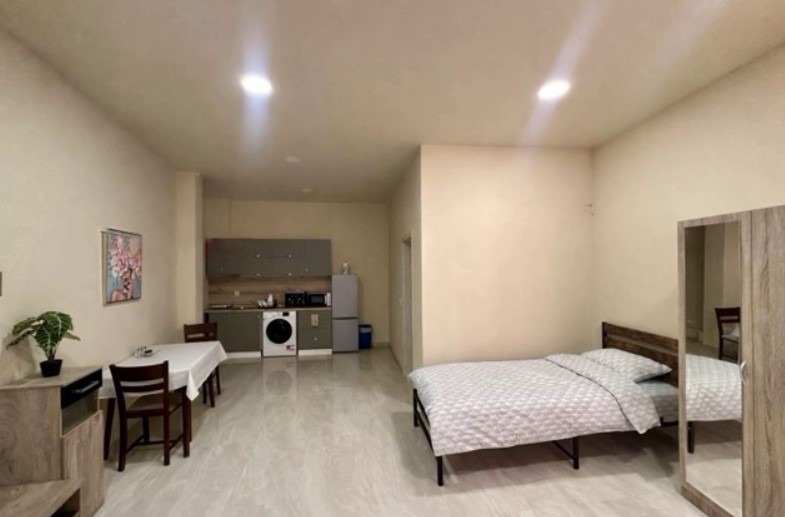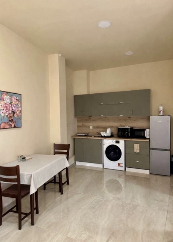 Имотът е обзаведен, с площ 40 кв.м, на 1-ви от 8 етажна сграда с асансьор. Разпределението включва входно антре, хол с кухненски бокс и трапезария с обособен спален кът и баня с тоалетна.