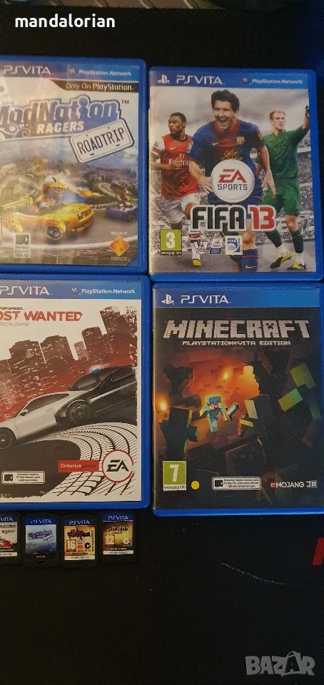 PSVITA 1. ModNation Racers: Road Trip 25€ 2. ModNation Racers: Road Trip 25€ 3. FIFA 13 16€ 4. LEGO Legends of Chima: Laval's Journey 15€ 5. Need for Speed: Most Wanted 30€ 6. Minecraft 26€ 7. Spy Hunter без кутия 15€ 8. ModNation Racers: Road Trip без кутия 10€ 9. Soul Sacrifice без кутия 20€ 10. Toukiden 20€ Благодаря за проявения интерес, но бартери и коментари по цената не ме устройват.Вижте и другите ми обяви тук в сайта.Изпращам само по куриерска служба ЕКОНТ.Всичко се изпраща със задължителен преглед и тест.
