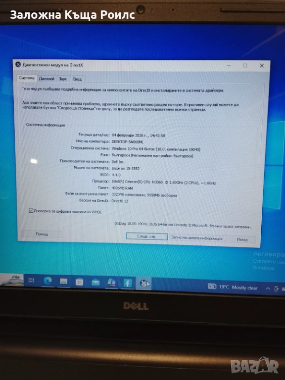 ПРОДАВА СЕ ЛАПТОП – DELL INSPIRON 15-3552
