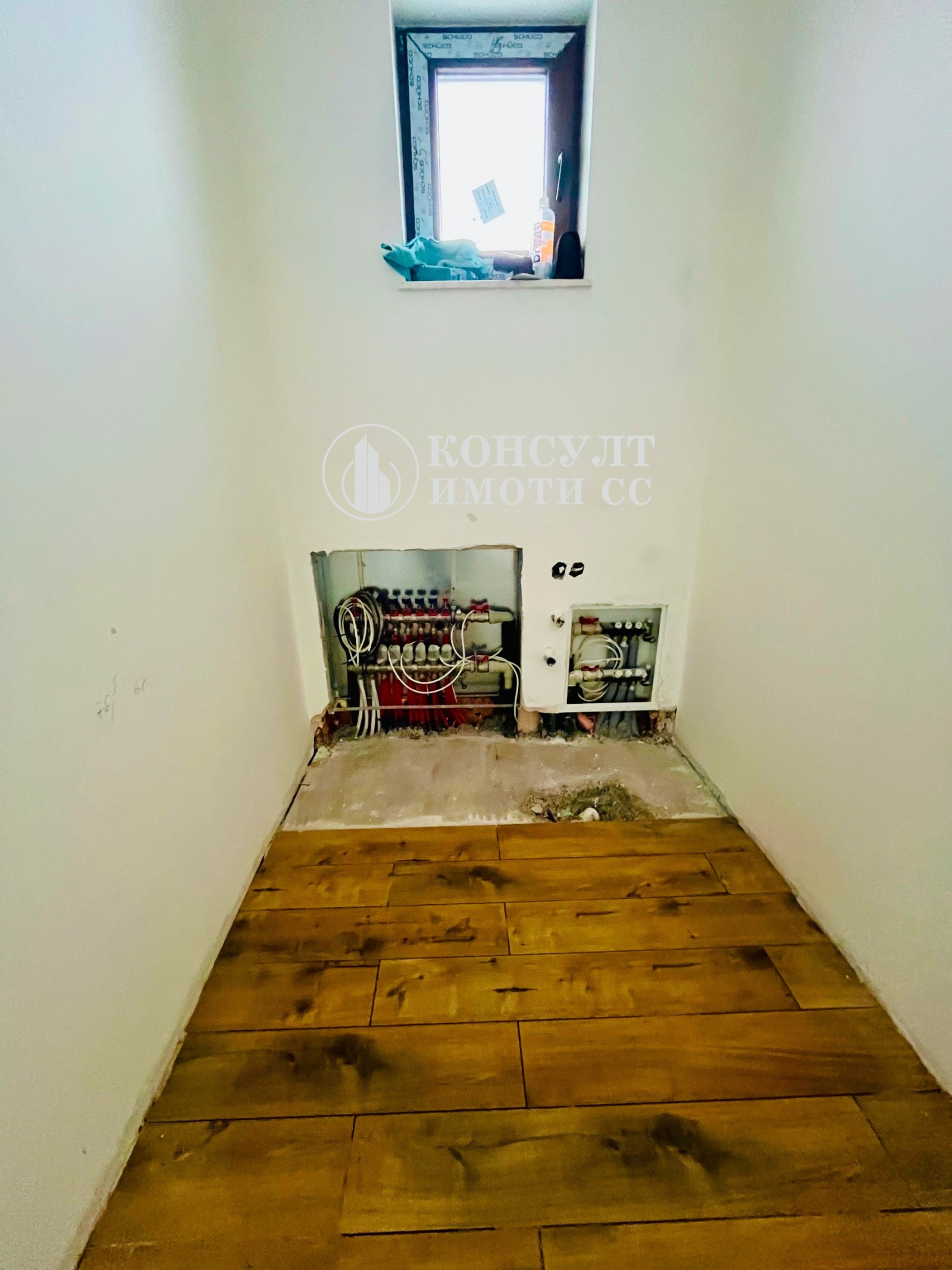 Изградена водопроводна инсталация с рециркулация на водата,както и водно подово отопление с термопомпа, конвектори в стаите за охлаждане/отопление, лири в баните.