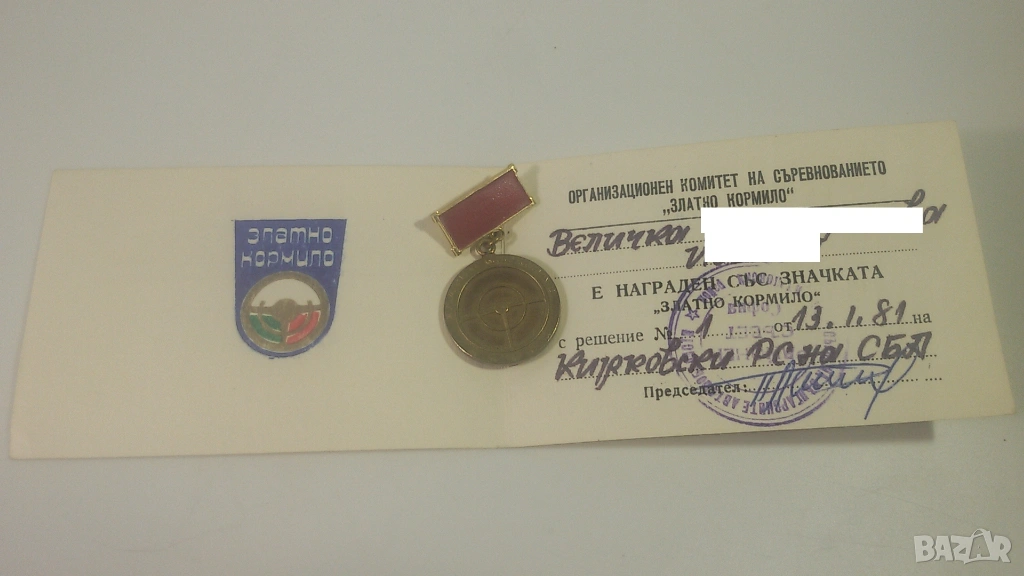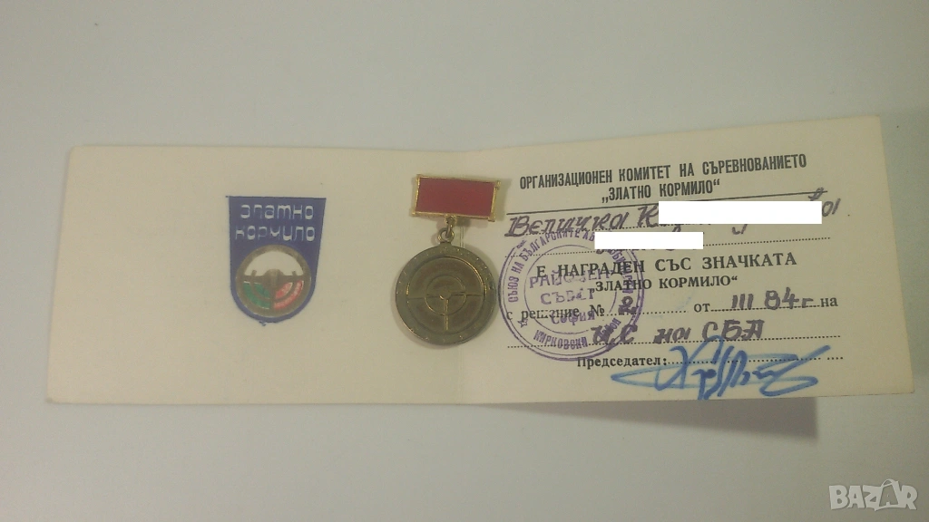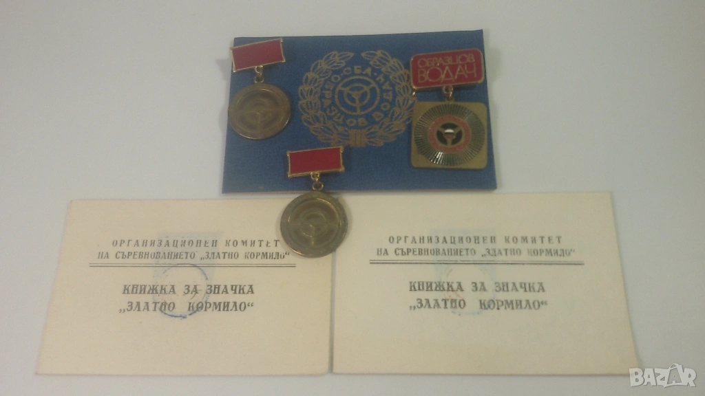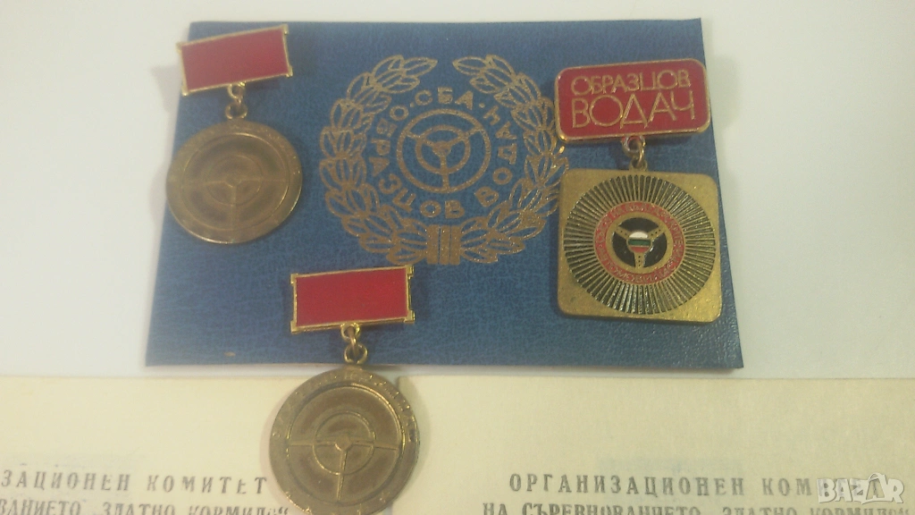 3 значки/медали: 2 "Златно кормило" и 1 "Образцов водач" от 1981 и 1984 г., с книжки