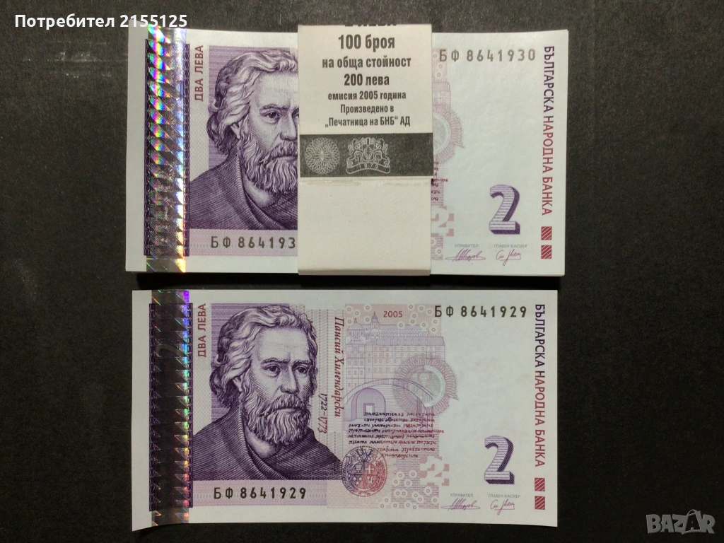 2 лева,2004 г.По отделно , всяка за 4.5€.Ако купите повече от 1 банкнота,то Вашите банкноти ,ще бъдат с поредни номера.