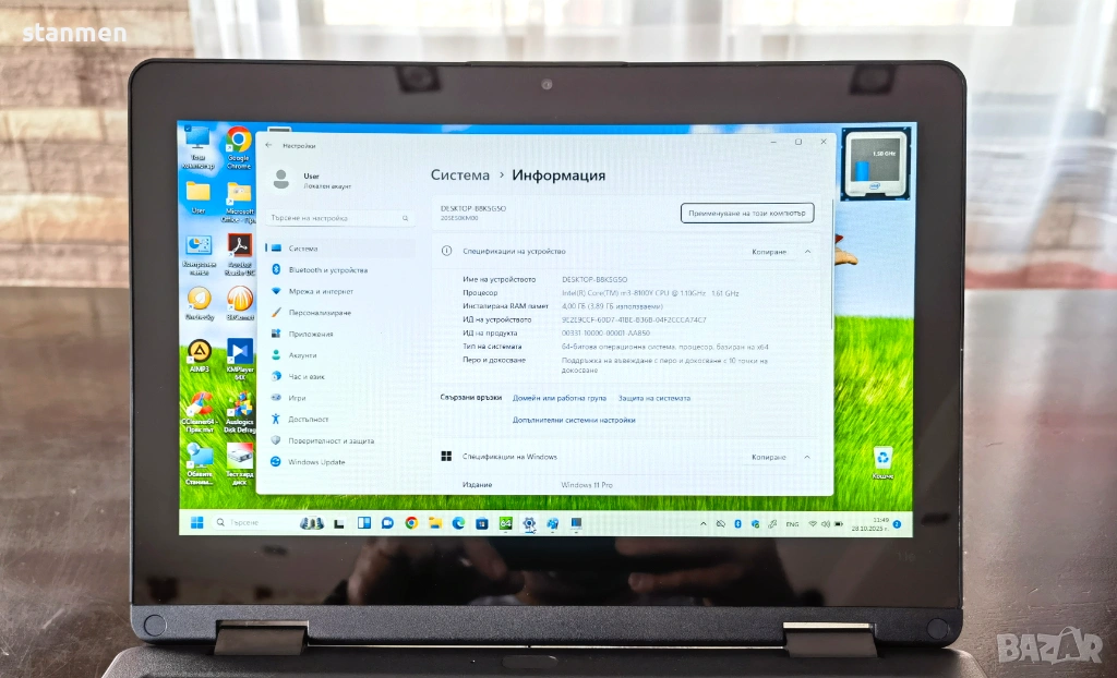 Дисплей антирефлексен: Touch Screen IPS 11.6 инчов (30см), широкоекранен LED дисплей с резолюция 1333x768. Ярка и цветово наситена матрица без дефекти. Тъчскрейн активен с докосване. Дисплея се обръща на 360 градуса, тип ЙОГА.